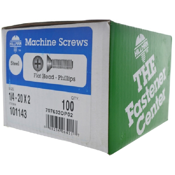 Hillman 101143 Machine Screw, 1/4-20 Thread, 2 in L, Flat Head, Phillips Drive, Steel, Zinc-Plated, 100 PK