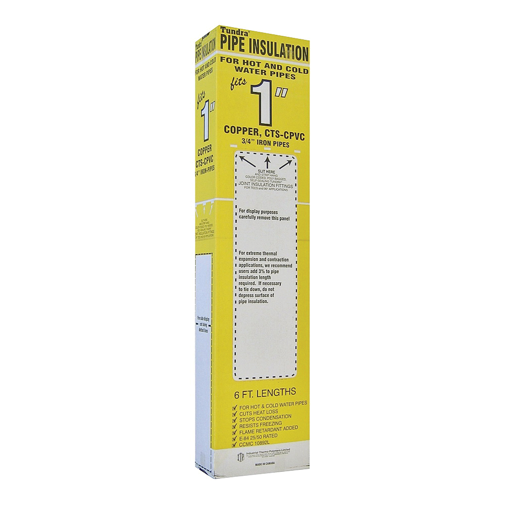 Tundra® closed cell polyethylene foam semi-slit pipe insulation is used in residential and light commercial plumbing projects to prevent heat loss and protect pipes from freezing. It is available in wall thicknesses of 3/8 to 1 in sizes ranging from 3/8 up to 4 in IPS ID. Tundra® is available to the trade in 6 ft L and also sold in limited sizes through retail stores across North America. Tundra® has a low thermal conductivity and very low water vapor transmission rate. This low density product demonstrates excellent thermal, physical and chemical-resistant properties and has a broad service temperature range between -297 and 200 deg F (-183 and 93 deg C). It can be installed in residential and light commercial plumbing projects. It is acceptable for use with heat tracing/heat tape.
