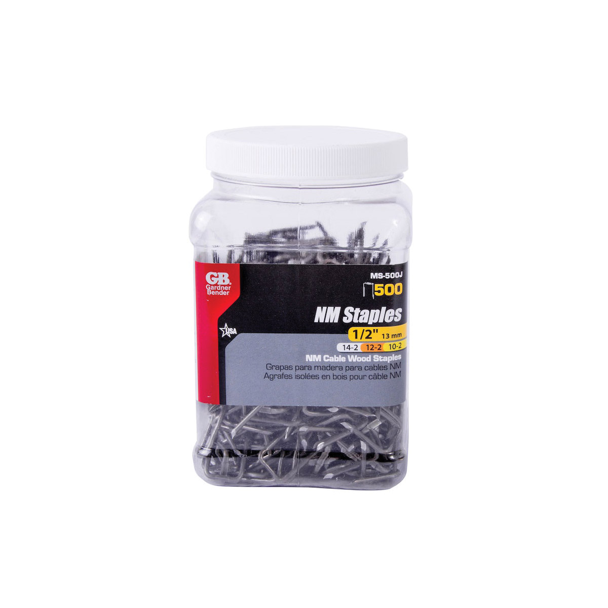 Gardner Bender provides a complete line of staple and fastening solutions for all industries, including industrial, residential, construction or manufacturing. From low-voltage wire to service entrance cables, professionals rely on Gardner Bender for quality fastening products. The Gardner Bender 1/2 in steel staples for 14/2, 12/2 and 10/2 non-metallic cable (500-pack) provide durable protection when fastening electric cable to wood. These staples offer a recessed head to ensure straight insertion and the safety of the cable jacket during installation. Legs drive straight to resist splitting wood.