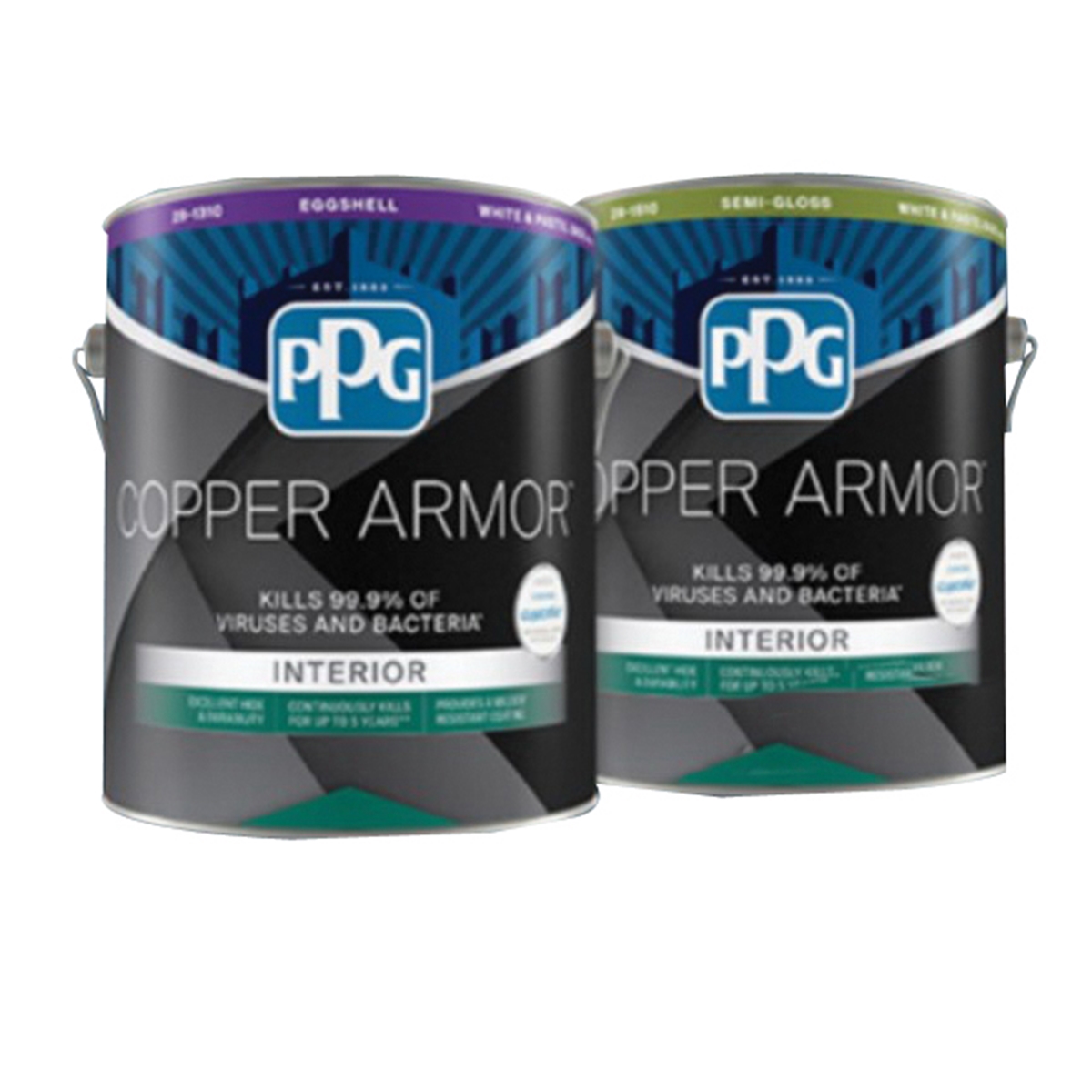 Powered by Corning® Guardiant® anti-microbial Copper Ion Technology, PPG COPPER ARMOR™ interior paint provides continuous protection on the painted surface, within 2 hr of exposure, from bacteria and viruses between cleaning and disinfecting. PPG COPPER ARMOR™ interior paint is EPA-registered as an anti-viral and anti-bacterial paint that kills 99.9% of viruses and bacteria on the painted surface by utilizing the intrinsic antimicrobial properties of copper to take an innovative non-chemical approach to killing bacteria and viruses.