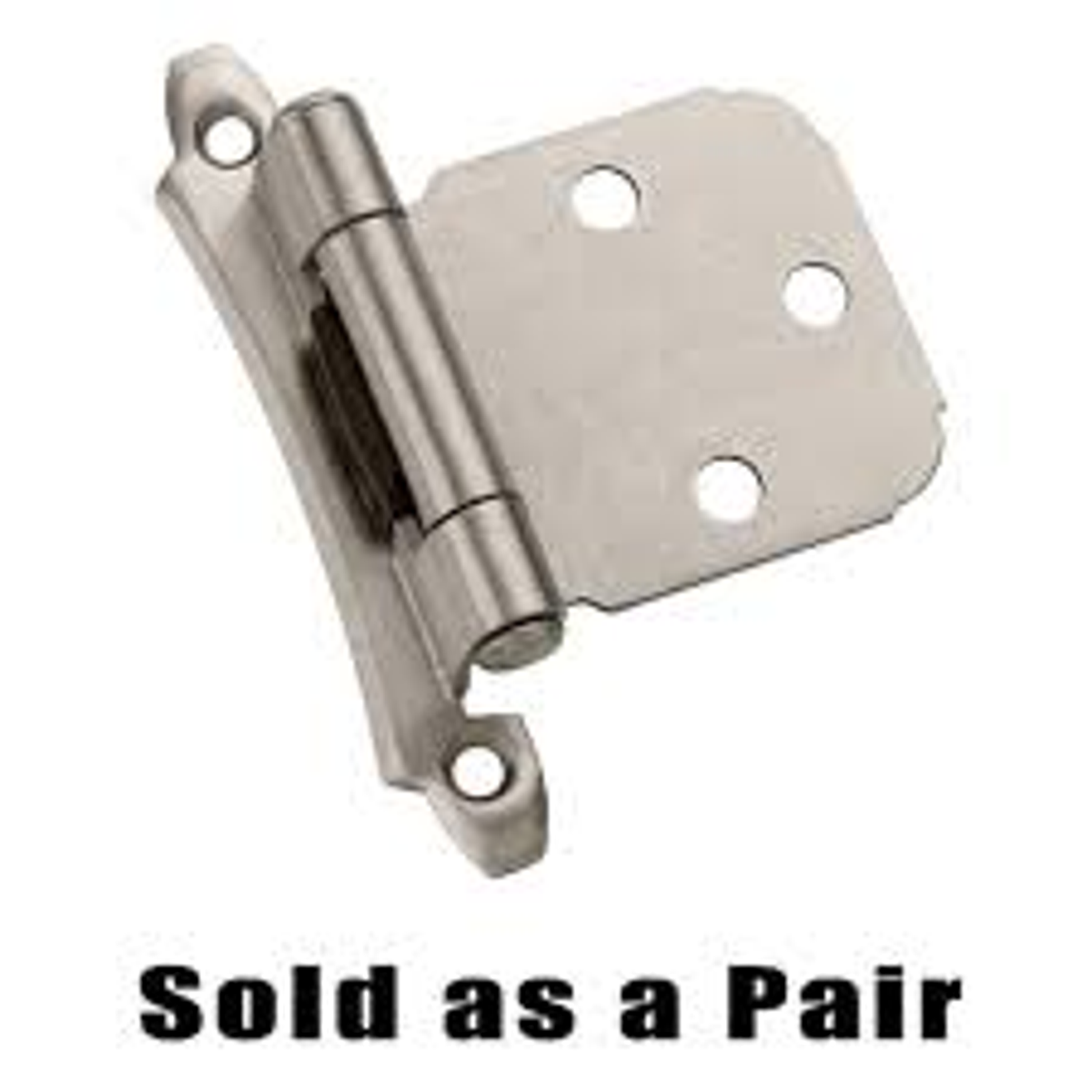 Amerock Hinge, Hinge Type: Self-Closing, Style: Traditional, Cabinet Frame Type: Frame, Face Mounting, Steel, Projection Size: 3/4 in, Satin Nickel, Dimensions: 2-3/4 in L x 2 in W, Includes: (2) #5 x 5/8 in Oval Head Screw, (3) #5 x 1/2 in Flat Head Screw