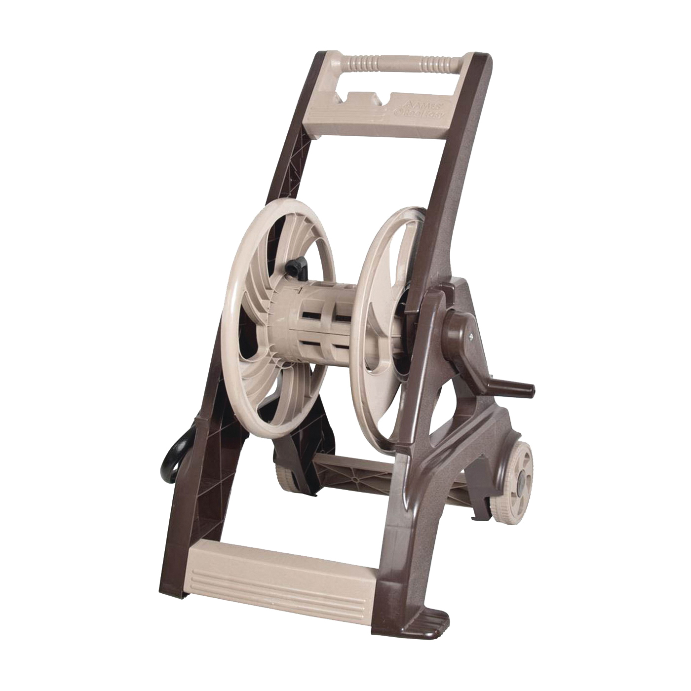 Ames Reel Easy Hose Cart, Hose Capacity: 5/8 in, Hose Size: 175 ft L, Fold-Down Handle, Poly, Dimensions: 24 in H x 22 in W x 23 in D, Includes: Leader Hose