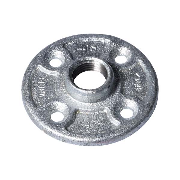 The galvanized floor flanges are made from malleable iron for tensile strength. Its galvanized finish resists rust in water, air and steam applications.