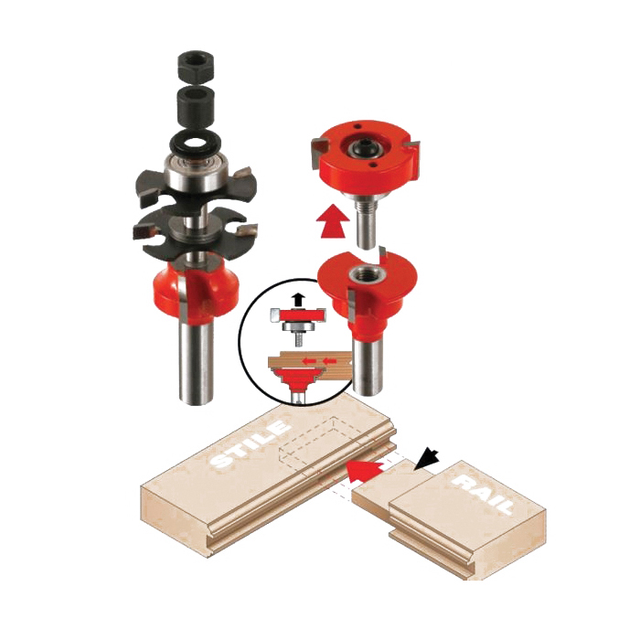 Freud's unique premier adjustable rail and stile system builds ideal doors in material from 5/8 to 1-1/4 in THK and also features Freud's patented technology for producing extra strong long tenon joints. The System also includes adjustable shims to adjust the panel groove from 7/32 in (5.5 mm) for thinner plywood panels to 3/8 in (9.5 mm) THK for larger solid wood raised panels. Offered in five different profiles to suit any project. For even more versatility, add optional cutters to produce double sided doors or the optional cutter for glass and screen door construction. Use in table-mounted routers to mill and hardwood or softwood.