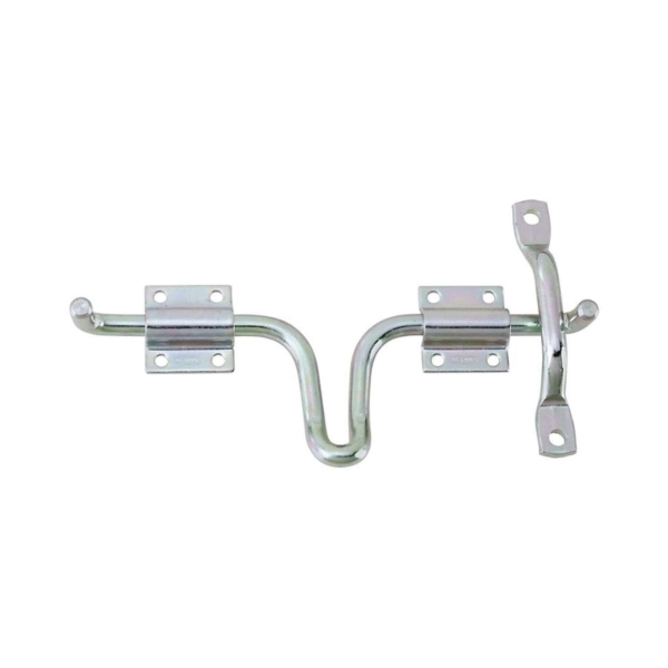 Designed for right or left hand swinging gates. Rounded edges to protect livestock. Sturdy design gives years of trouble-free service. To lock, use National's #33S plate staple and a padlock. Lags and mounting screws included. Hot rolled steel guides; steel rod bar and strike. Boxed.