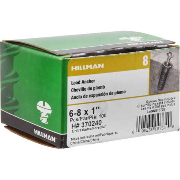 • Hillman 370240 Wood Screw Anchor, #6-8 Dia, 1 in L