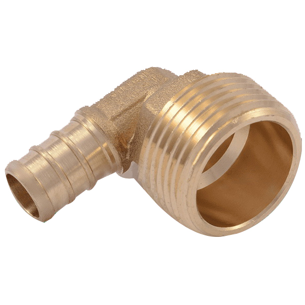 SharkBite Adapter Pipe Elbow, Nominal Size: 1/2 x 3/4 in, Barb x MNPT Connection, Angle: 90 deg, 80 to 160 psi, Operating Temperature: 33 to 200 deg F, Brass, Suitable for: PEX and PE-RT Pipes