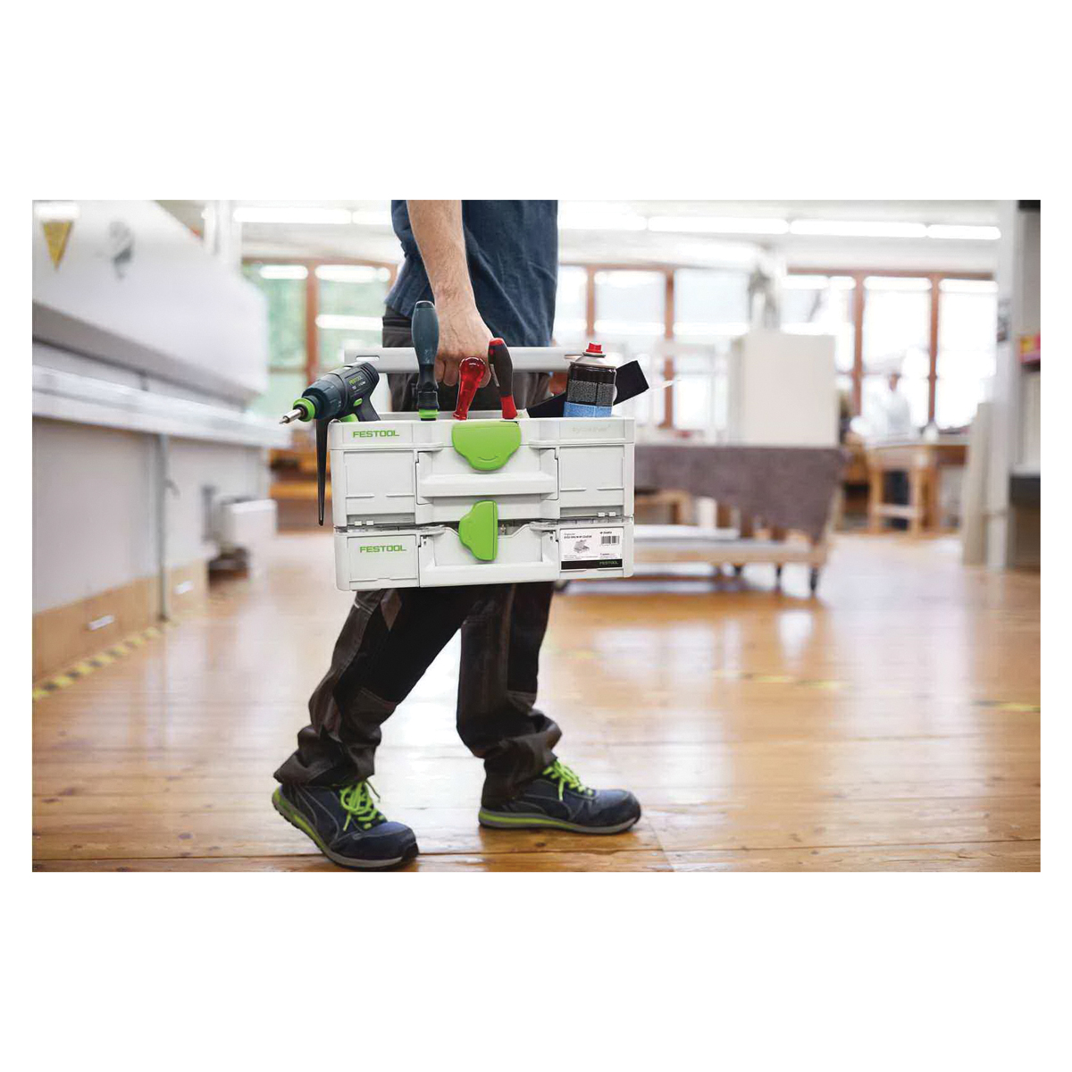 The open systainer for instant access. Open at the top, reduced to the bare essentials and designed for quick access to the hand tools, consumables and accessories. And perfectly matched to the systainer system - Systainercu. toolboxes can be connected to each other, as well as to all systainer generations and mobile dust extractors. Spacious compartment and foldable carrying handle for quick access to tools, robust design, made from high-quality plastic, load capacity of up to 20 kg, can connect to the systainer system thanks to T-LOC, in standard format with proven base area, for practical transportation of hand tools, consumable materials and accessories.