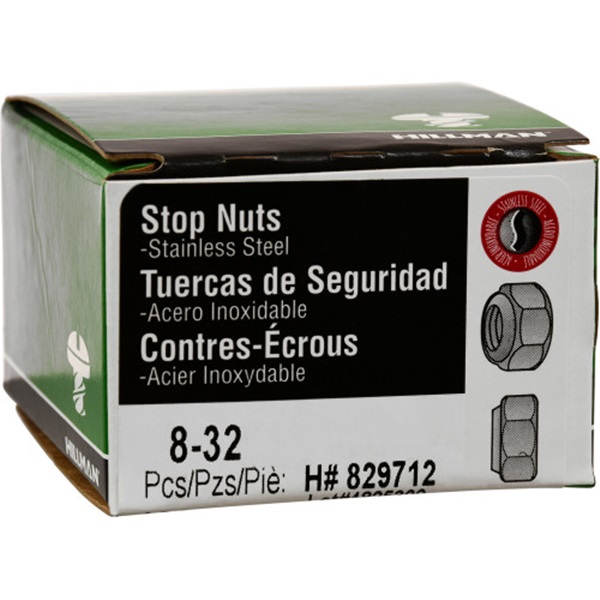 • Hillman 829712 Stop Nut, Coarse Thread, #8-32 Thread, Stainless Steel, 100/PK