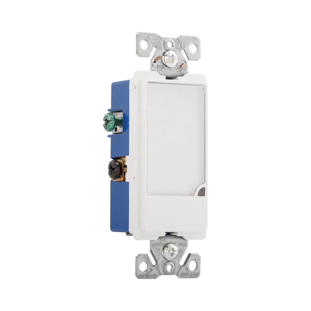 Eaton Wallbox Night Light, 120 V, 15 A, Wattage Rating: 1 W, Lamp Type: LED, Number of Lamps: 3, Lumens: 140 Lumens, Ballast Type: Dimmable, Average Life: 50,000 hr, IP Rating: NEMA 5-15R, 5-20R, Temperature Rating: -20 to 60 deg C, Flush Mounting, Fixture Material: Thermoplastic, White, Dimensions: 4-1/4 in L x 2 in W x 2 in H