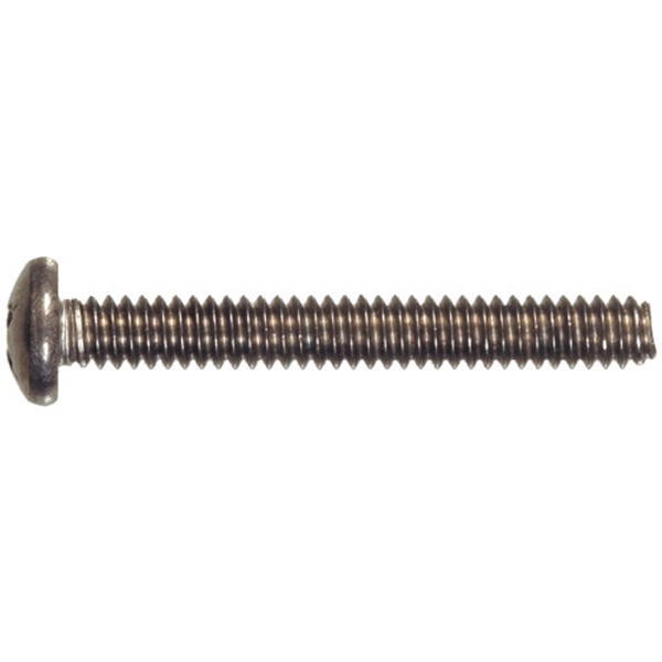 A machine screw is a fastening screw with a machine-cut thread throughout the length of its shank. Machine screws are used with nuts or screwed directly into a threaded receptacle to fasten various components together in machines, tools and more. Fasten with a screwdriver to reduce risk of over-tightening and protect the screw and fastened material. If nuts are needed, use with nuts of the same finish and threading for proper fit. The length of a machine screw is measured from under the head to the point of the screw. Use for any indoor or outdoor projects.