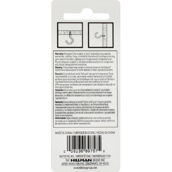Hillman 122315 Cup Hook, 1-1/4 in Thread, Brass
