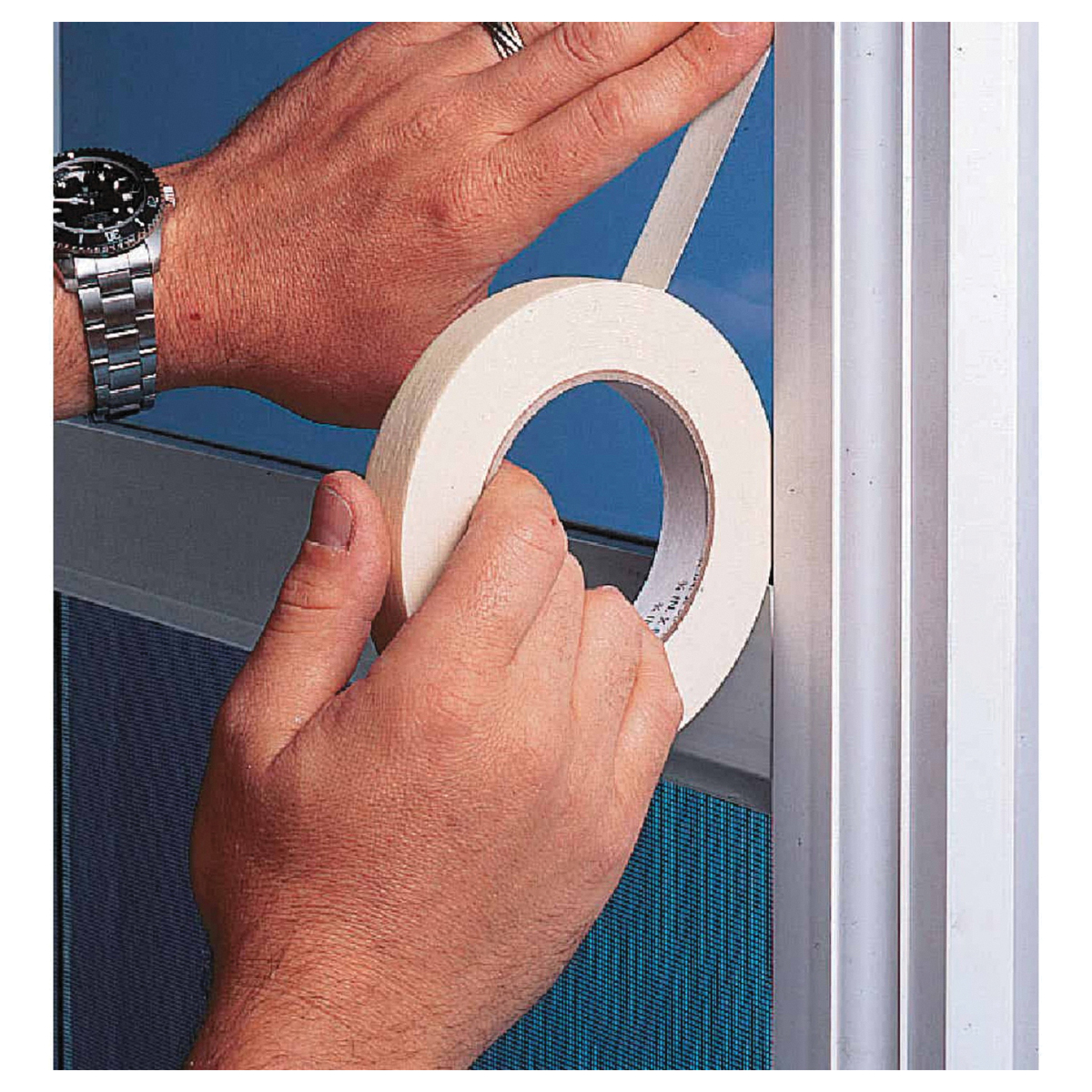 A general-purpose masking tape designed for numerous household applications including sealing small packages, light bundling and holding, labeling and paint masking