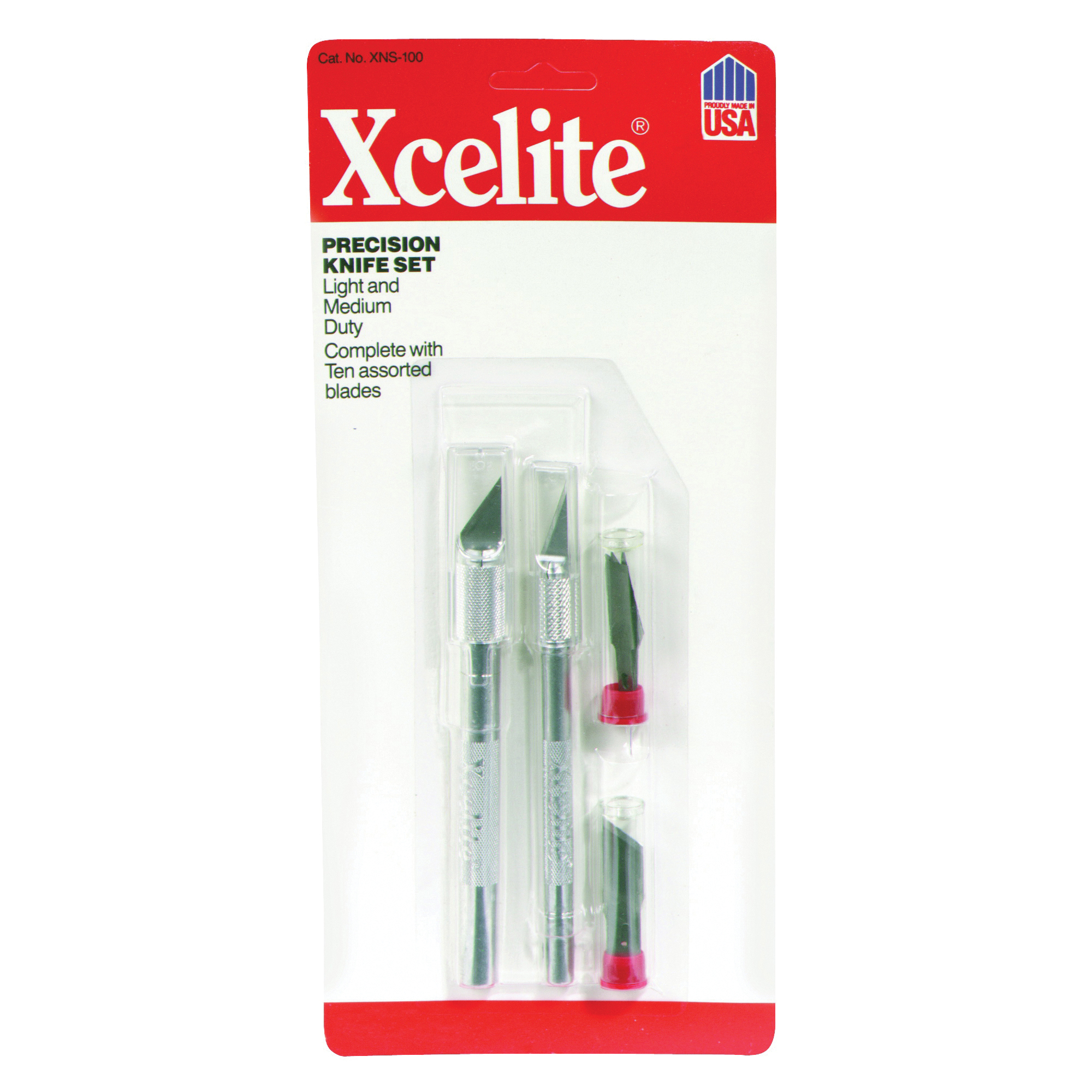Used for light- to medium-duty cutting on paper, also for soft and lightweight materials or wood. Includes: two hobby knife handles (5-13/16 in and 5-3/4 in), (10) assorted blades, for a wide range of cutting operations.