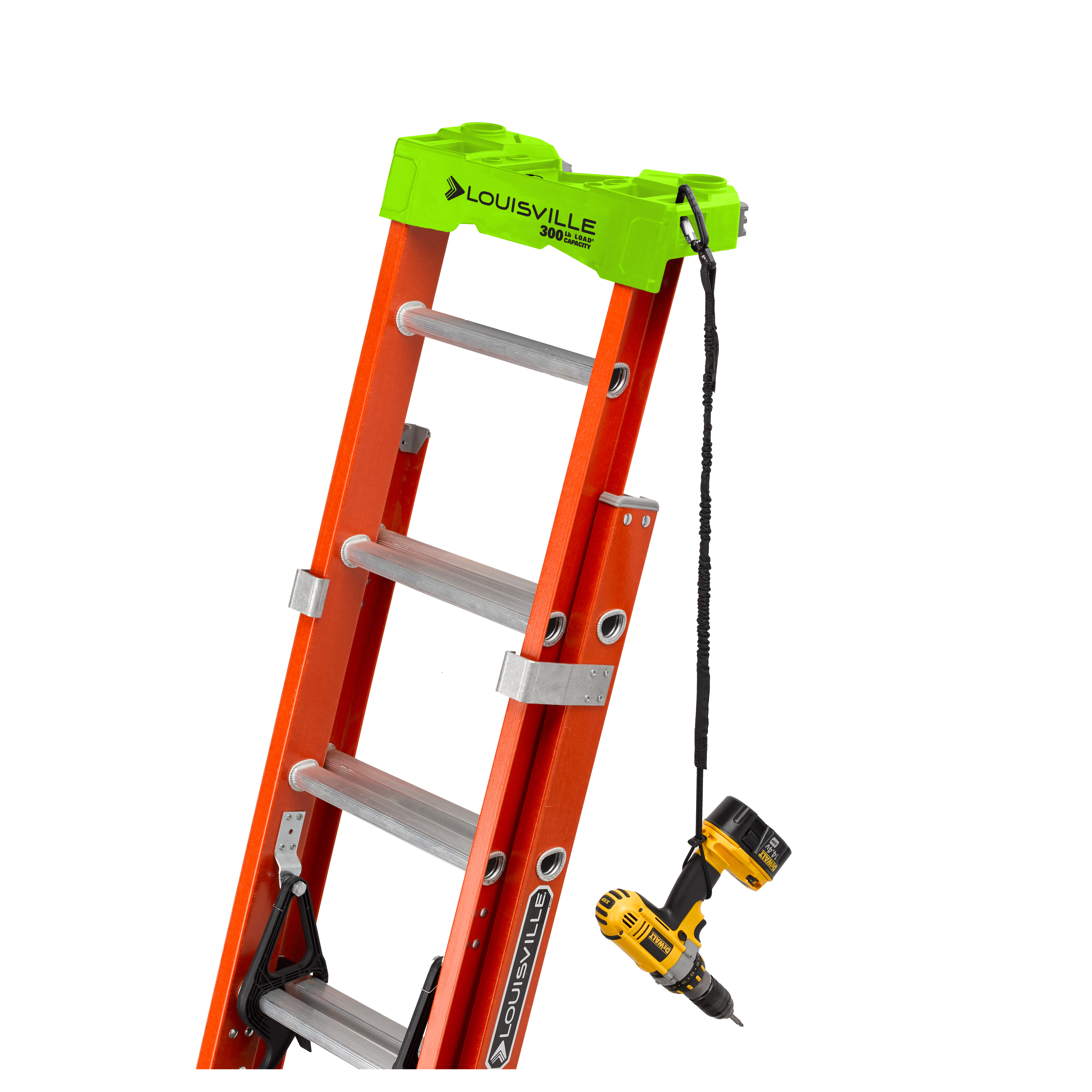 This Louisville 28 ft fiberglass extension ladder has a 300 lb load capacity, rated ANSI Type IA. It is equipped with the MAXLOCK rung lock, custom engineered from a patented, advanced molecular polymer, MAXLOCK is the strongest, toughest, lightest rung lock ever made. This ladder also includes our patented ProTop specially designed to increase productivity. This innovative ProTop features a corner grip, pole grip, integrated bumper and work tray, all compact and accessible in a spacious design. This ladder also features outside slide guides, fully serrated D-shape rungs for a slip-resistant surface, non-marring rail end caps, QuickLatch rung lock for better secure operation, rope and pulley and full heavy-duty metal boot with steel swivel safety shoes to be used with the tread down or in spike position. The Louisville L-3022-28PT fiberglass extension ladder meets or exceeds the safety standards set by ANSI, CSA and OSHA.