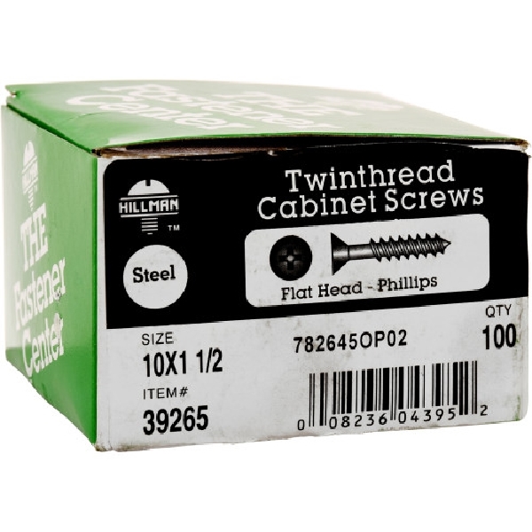 Hillman 39265 Cabinet Screw, #10 Thread, 1-1/2 in L, Twinfast Thread, Flat Head, Phillips Drive, Steel, Black Phosphate