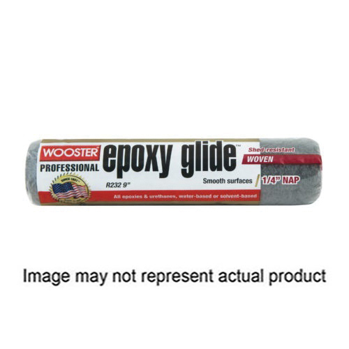 Wooster Roller Cover, 1/4 in Thick Nap, 18 in L, Fabric Cover, Core Material: Polypropylene, Dark Gray/Green, Surface Type: Smooth, Paint Type: Epoxies, Urethanes, Shedless: Yes, Suitable for: 8614, BR045-18, BR047-18, BR036-18 and BR412-21 Frames, Includes: (2) Endcaps