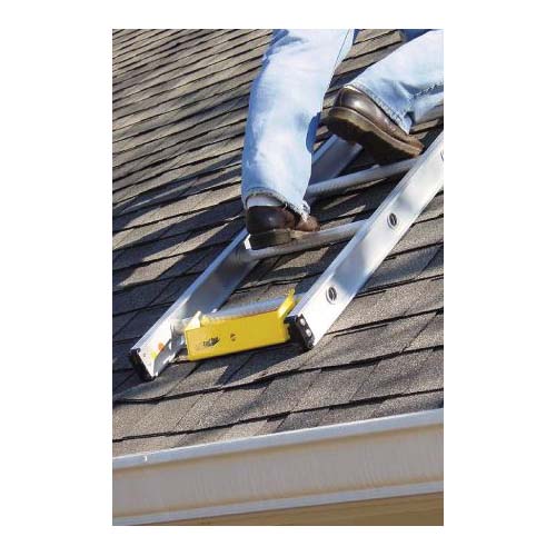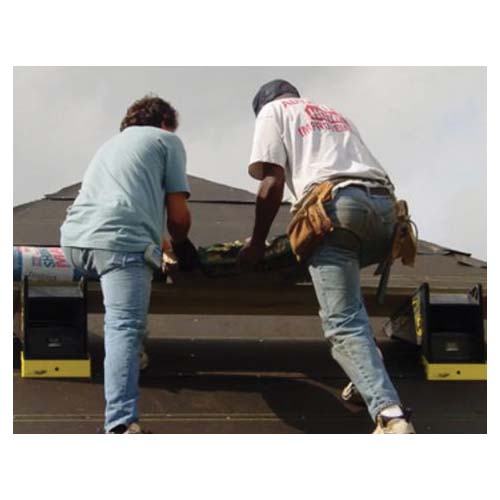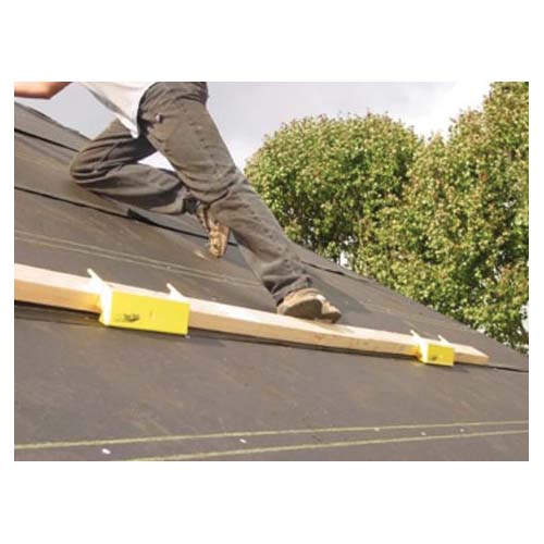 Very few products can match the usefulness of the roof boot when it comes to working on roofs. The roof boot makes steep roofs safer for you and your employees. The roof boot's main function is to secure a pivot ladder Tool on a 7/12 pitch (or greater) asphalt shingled roof. Sometimes it's difficult to secure a toe-board or a ladder when you are working on a roof, that is not the case with the roof boot. The roof boot is easily secured by lifting up a shingle and nailing the roof boot as instructed.