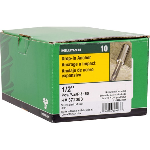 Drop-in anchors are internally threaded for easy removability. Pre-drill your hole and drop in the anchor. Installation works best with a setting tool.