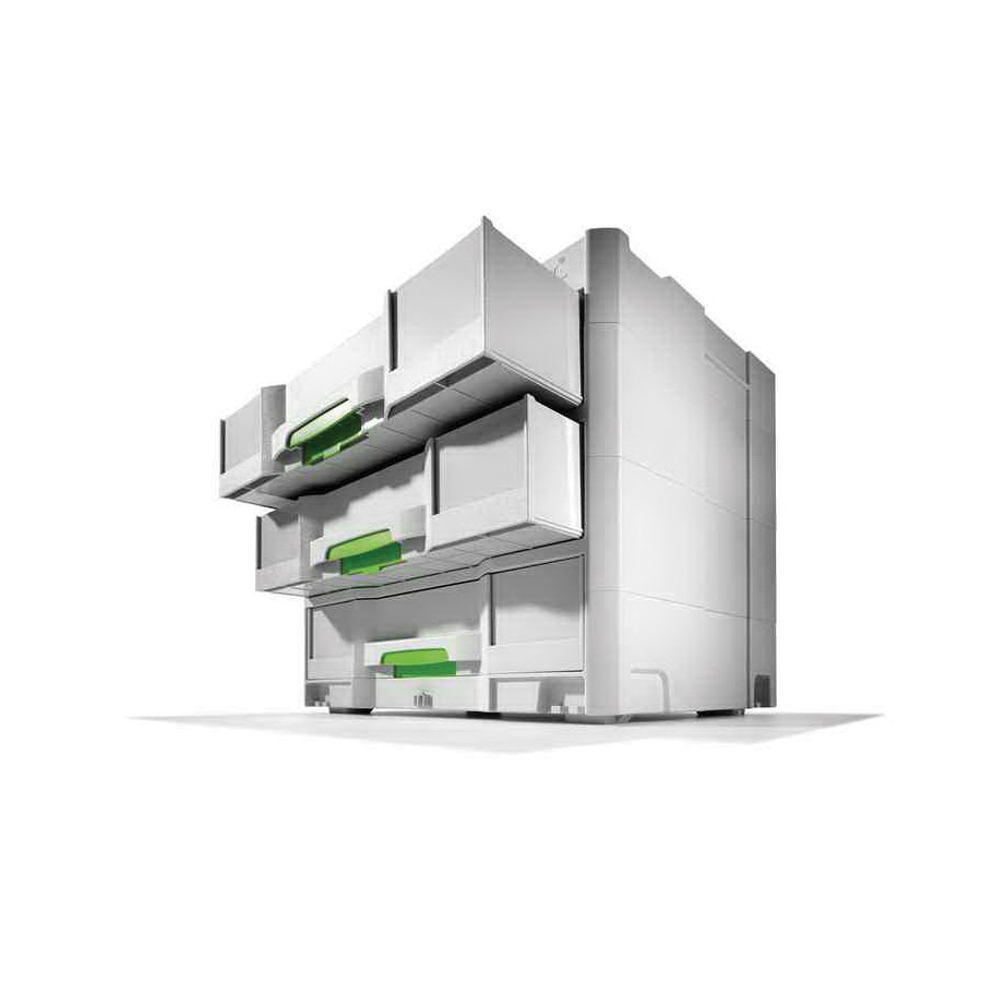 For storage in drawers, small parts such as nails, dowels or screws can be stored just as neatly as hand tools. Sortainer with up to twelve drawers are the ideal supplement to the Systainer portfolio.