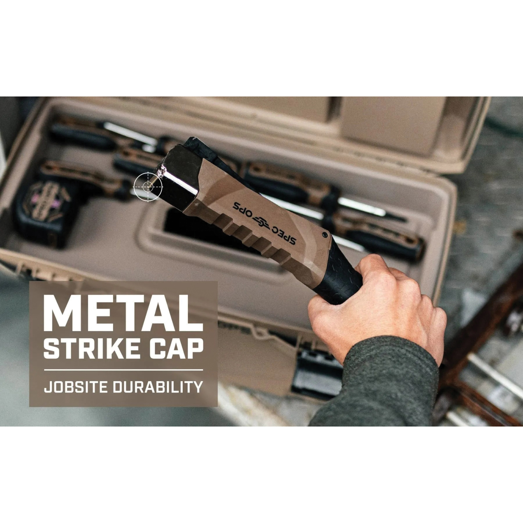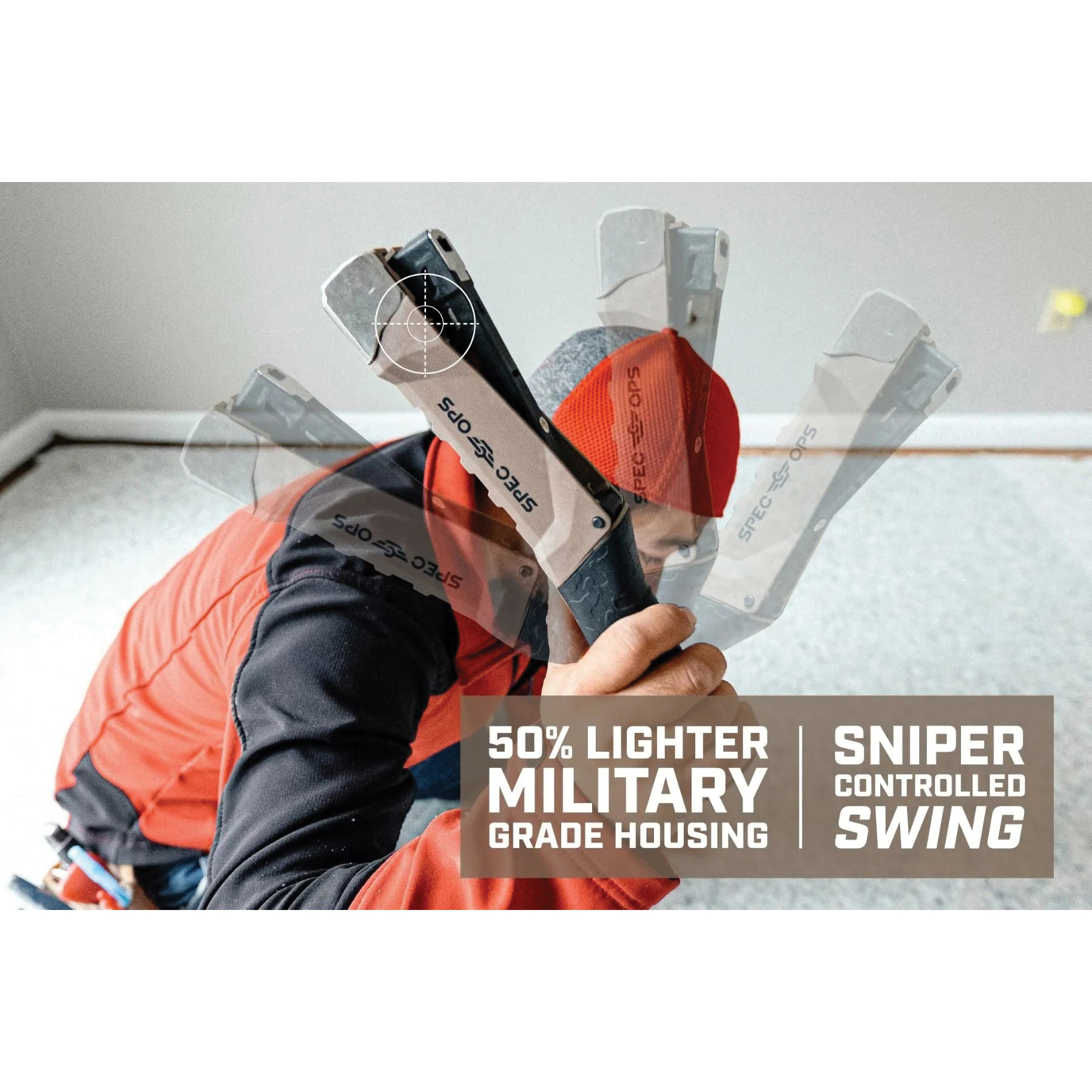 Say goodbye to a tired arm after a long day of installing roofing felt paper, construction house-wrap or flooring underlayment with this Spec Ops heavy-duty hammer tacker. Extremely durable yet constructed with up to 50% lighter military-grade composite housing, this hammer tacker will give you sniper-like control and accuracy with less fatigue. The ballistically balanced design strikes like an air-raid, giving you maximum striking and driving power to improve productivity. This easy to use hammer tacker is manufactured with a shock-absorbing pistol grip for ultimate vibration reduction. The slap stapler's grip also has curved ends that act as a knuckle guard to help prevent injury. This hammer stapler features a metal strike cap for extreme durability and a low fastener indicator to eliminate dry firing. All Spec Ops tools are backed by our five-star, hassle-free lifetime warranty and with each purchase made, we support our nation's heroes by donating 3% of proceeds to veteran and first responder causes.