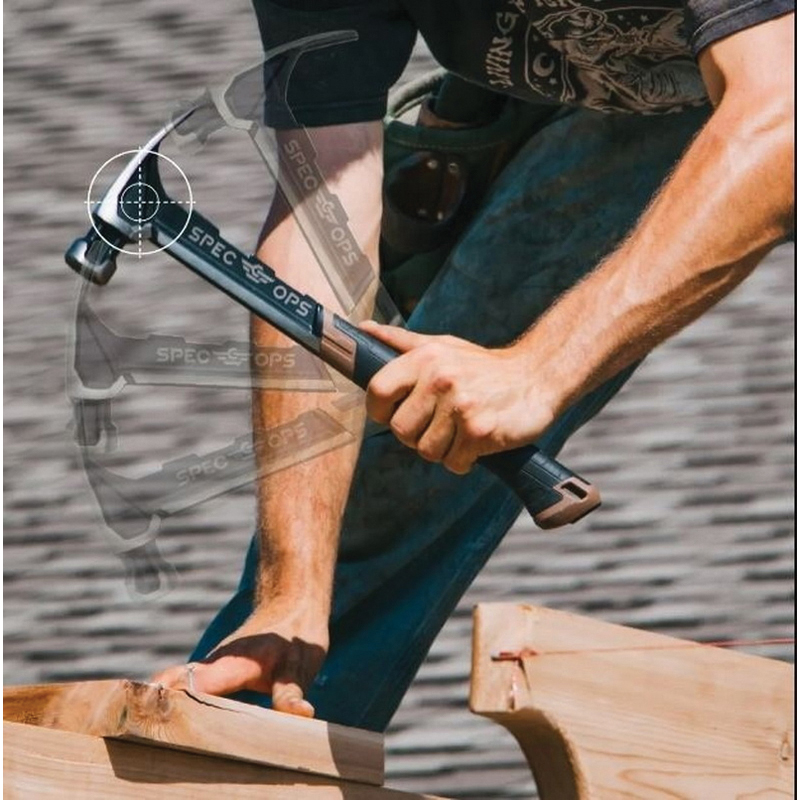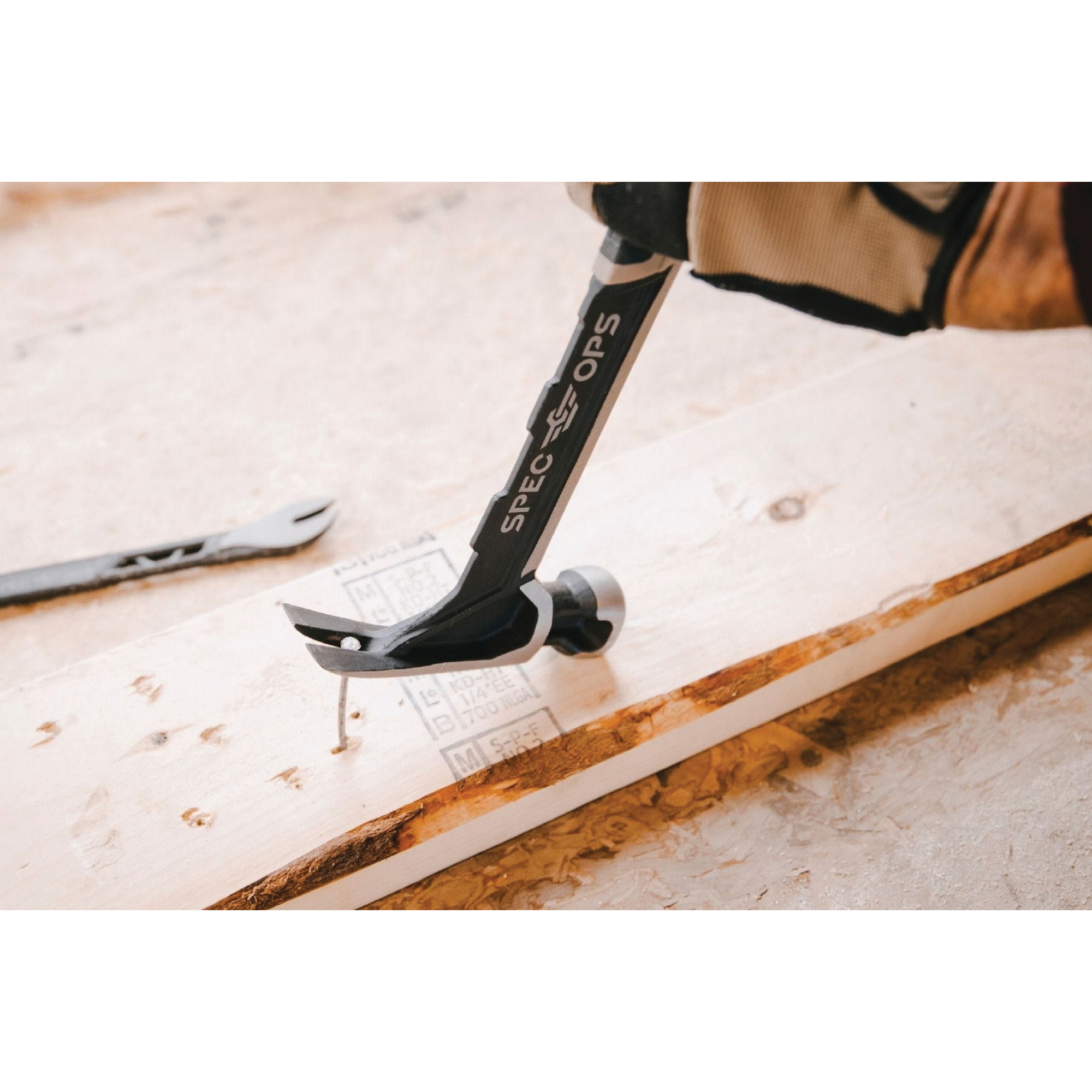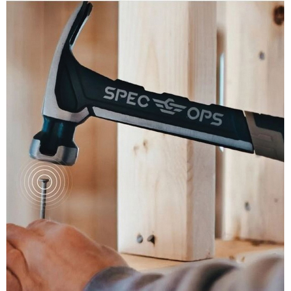 Meet the ultimate job site wingman. Purposefully engineered for elite carpenters, roofers and contractors, the Spec Ops 20 oz nailing hammer delivers failsafe performance and power on every mission. With an aerodynamic, high-carbon steel head that's 25% lighter and ballistically balanced design, this hammer provides sniper-controlled swings at maximum velocity and brute, unadulterated striking power that puts old-school, heavy hammers to shame. For optimum vibration reduction, the bi-material handle is built with a rugged frame and a camo-textured, MOA grip that absorbs shock and lessens sting even when nailing into the hardest materials like engineered beams. To help you work faster, safer and more precisely, this hammer features a magnetic nail starter for rapid driving while extending overhead reach and range, a smooth face for damage-free nail-driving and a lanyard hole for compatibility with SRS Safety Retention Systems. This nailing hammer also features a versatile rip claw for precision demo, nail removal and splitting. And with a assurance to deliver a lifetime of mission capability on the world's toughest job sites, this hammer is forged with heat-treated, HCS and drop-tested at 100 ft to surpass MIL-SPEC standard. All Spec Ops tools are backed by our five-star, hassle-free lifetime warranty and with each purchase made, we support our nation's heroes by donating 3% of proceeds to veteran and first responder causes.