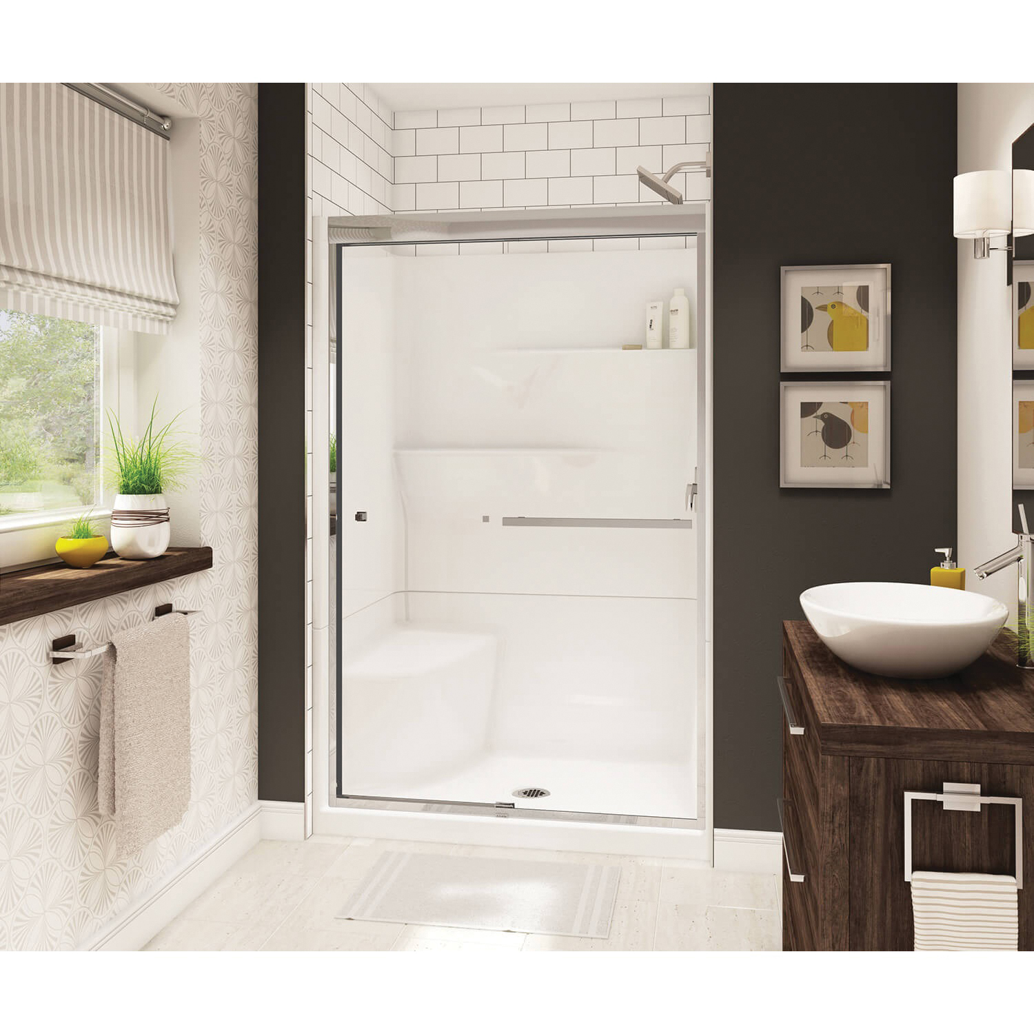 Maax 105596-000-002-001 Center Drain Two-Piece Shower, 47-7/8 in L, 44-5/8 in W, 75 in H, Acrylic, Alcove Installation