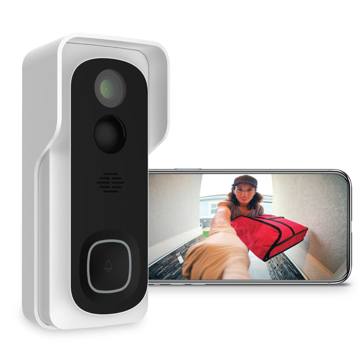 Feit Electric Smart Video Doorbell, Metal/Plastic, White, Wired/Wireless: Wireless, Dimensions: 5.11 in H x 2.28 in W x 1.1 in D