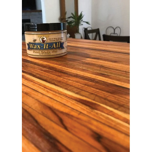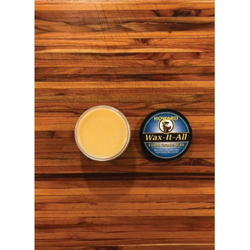 Howard Wax-It-All is a food-grade paste wax that is safe for any surface where food contact may occur. This thick, smooth blend of beeswax, carnauba wax and food-grade mineral oil revives faded surfaces and helps protect wood from drying out and cracking. Use Wax-It-All to care for a multitude of surfaces in and around your home. Wax-It-All can be used to shine and protect wood countertop surfaces, concrete, stainless steel, granite, marble, soapstone, slate and laminate. This innovative product revives faded wood, metal and plastic furniture, polishes wood and painted cabinets and helps to prevent tarnishing on metal surfaces.