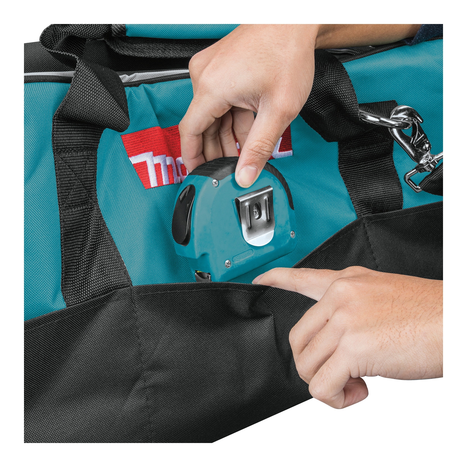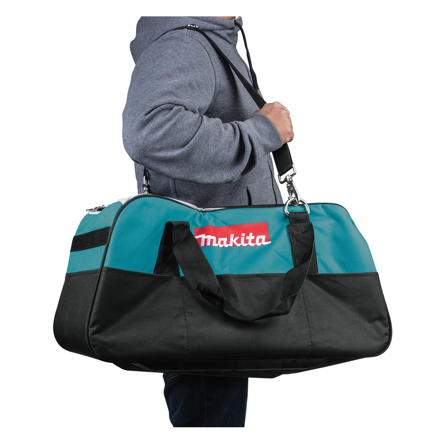 Makita tool bag is made of durable and lightweight materials. The bag feature a spacious interior for holding tools and accessories. The bag features both a carrying handle and shoulder strap for added user convenience transporting.