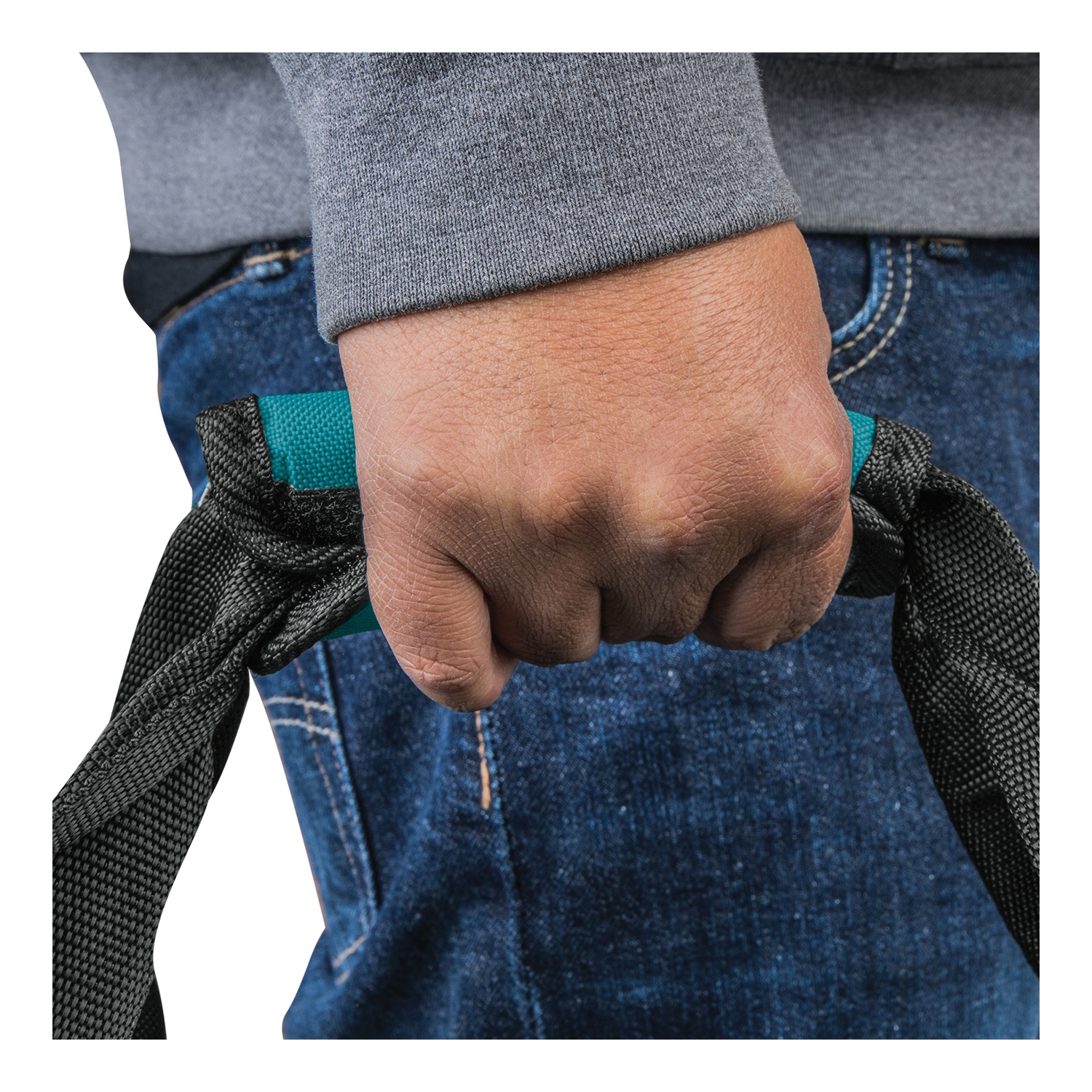 • Makita 831284-7 Contractor Tool Bag, 12 in W, 23 in D, 12 in H, 12-Pocket, Cotton Canvas, Black/Teal