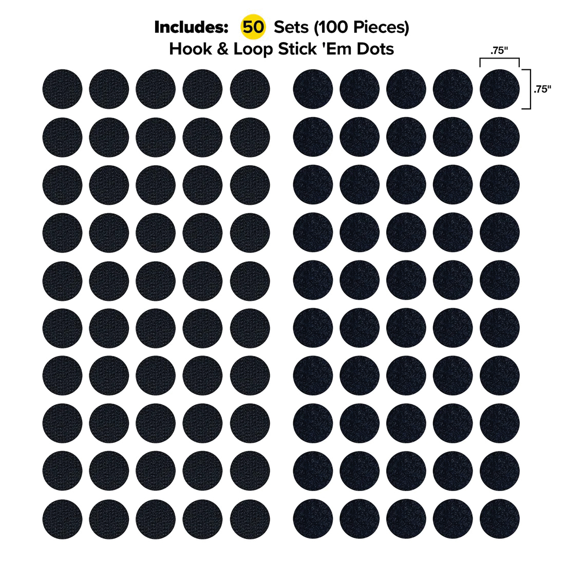 • Wrap-It Storage Stick 'Ems 450-D-75BL Hook and Loop Dot, Plastic, Black