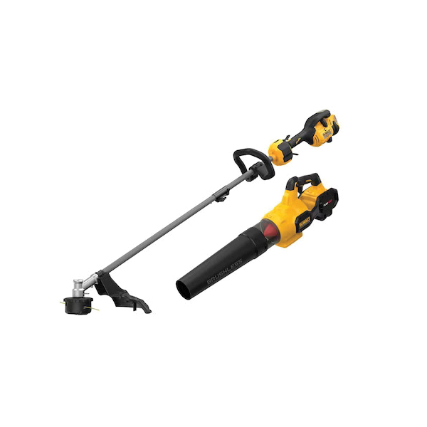Tame tough terrain with the 60 V max 17 in brushless cordless attachment capable string trimmer and the 60 V max handheld axial blower. The powerful attachment capable string trimmer is designed with universal attachment capability that enables you to convert it into other outdoor tools and maximize your productivity. Tackle stuck on and stubborn debris with the handheld axial blower that features a variable speed trigger to deliver controlled power output, while producing up to 600 cfm of air volume. This combo kit also includes a Flexvolt® 20 V/60 V max 9 Ah battery and charger so it's ready for work right out of the box.