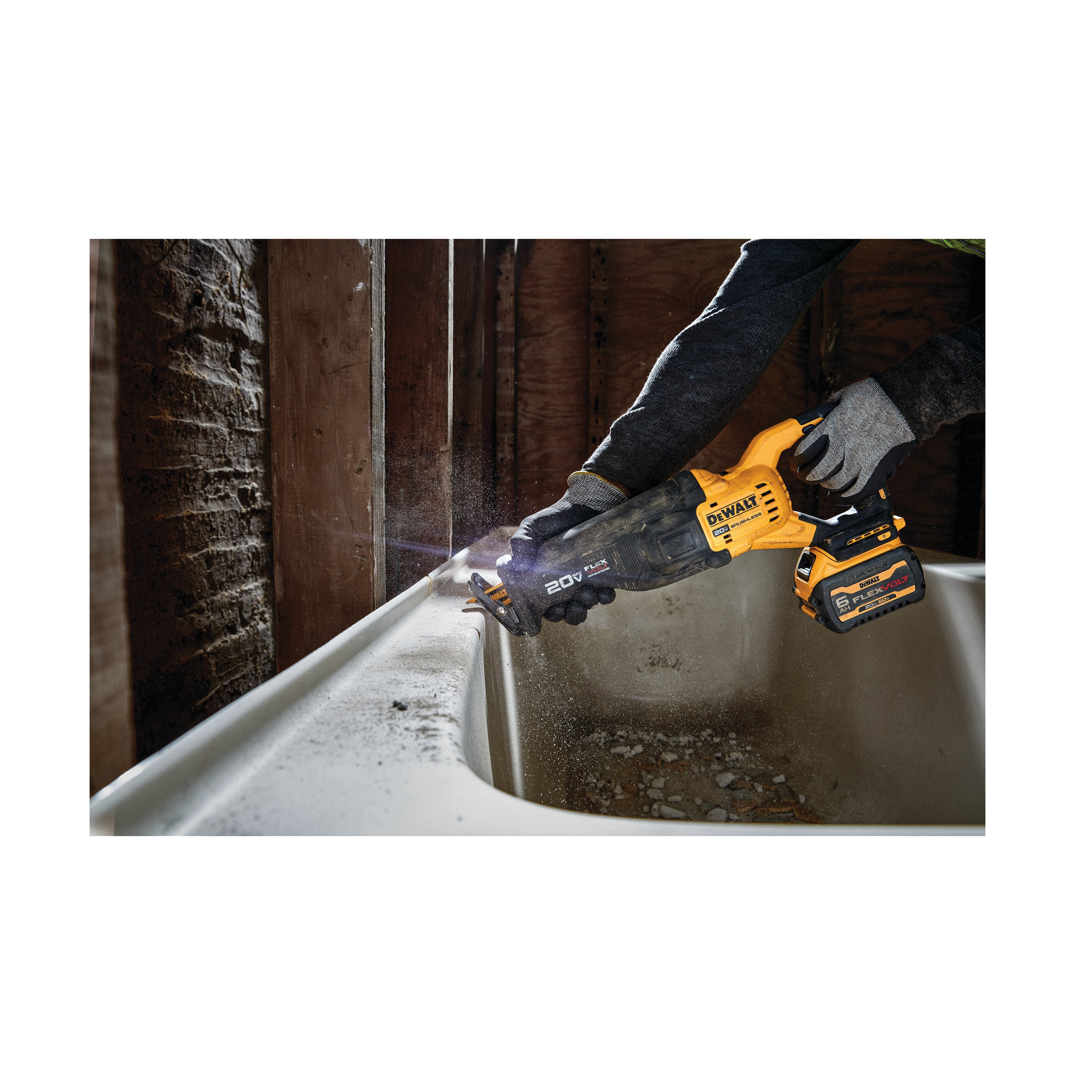 Take advantage of more power with the DeWALT® 20 V MAX* brushless tools with FLEXVOLT Advantage™ tool technology. The reciprocating saw has up to 50% more power when paired with a DCB606 60 V MAX* FLEXVOLT® battery vs a DCB205 DeWALT 20 V MAX battery.