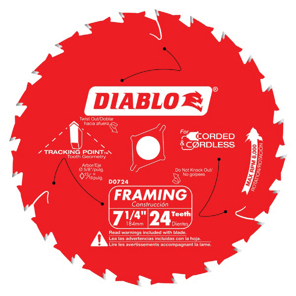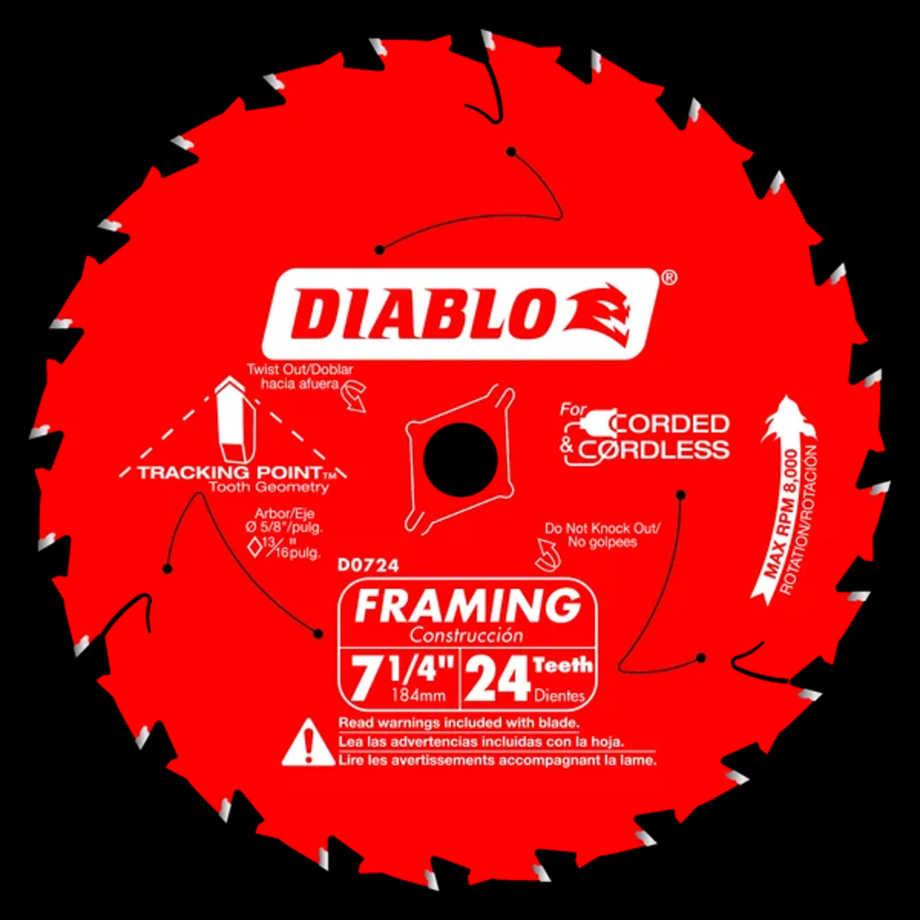Diablo Framing Saw Blade, 7-1/4 in Diameter, 24 Teeth