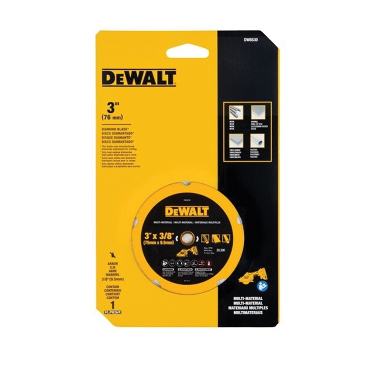 Maintain a consistent cutting depth, unlike a bonded abrasive wheel, with this 3 in diamond multi-material Blade. diamond technology provides high-durability in metal-cutting applications for fewer wheel changes compared to bonded cut-off wheels. This blade is recommended for use when cutting multiple types of materials including metal, drywall, fiber cement, plastic and fiberglass.