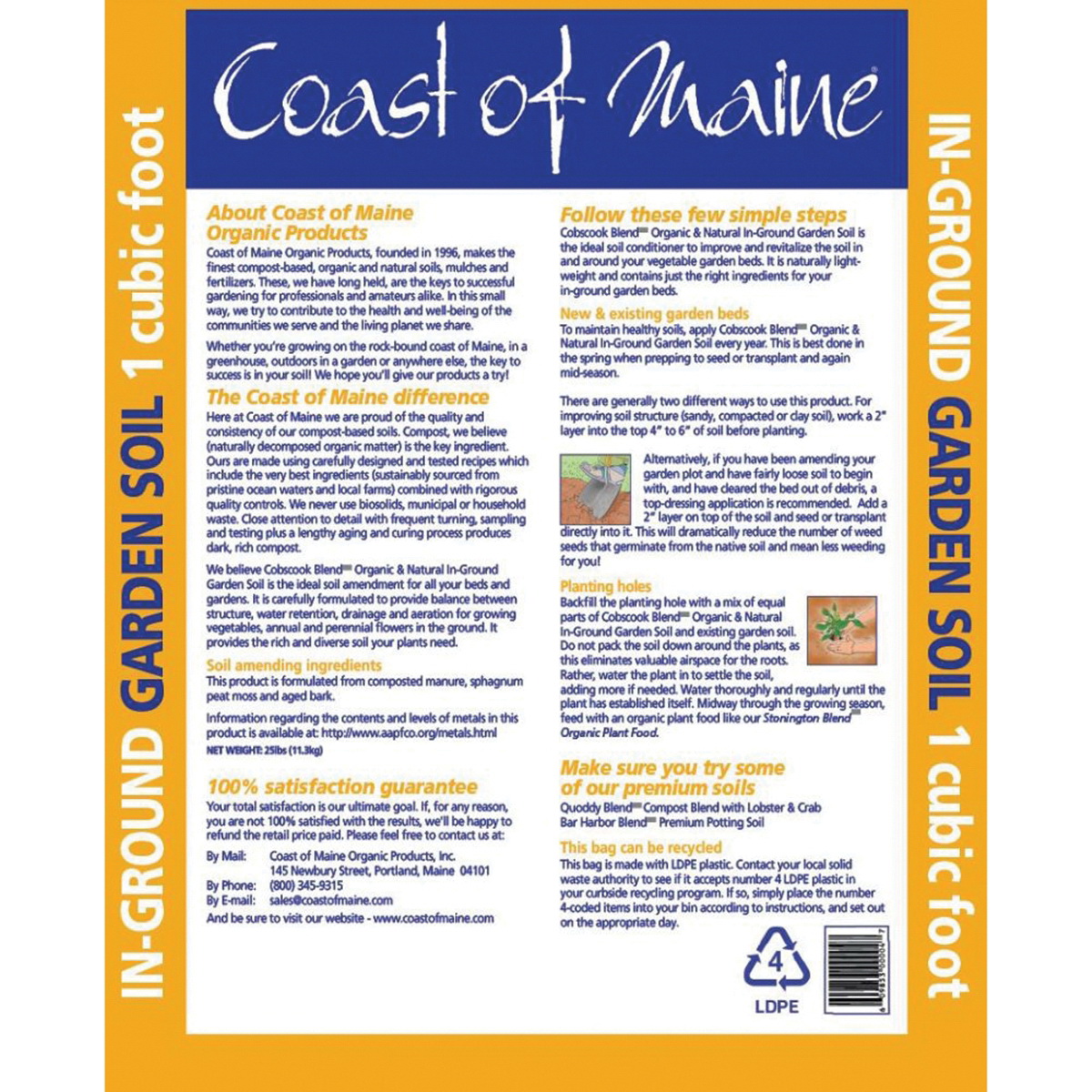 Coast of Maine organic products Cobscook Blend In-Ground garden soil is made with a blend of salmon and blueberry compost, aged bark, sphagnum peat moss and horticultural limestone. It requires less frequent watering and works well with acid-loving plants like azaleas, rhododendrons, holly, pieris and blueberry bushes.