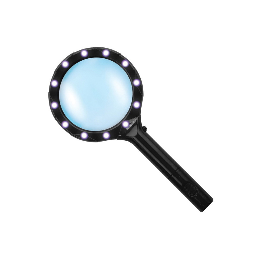 Illuminate and magnify small objects easily with our optical-grade magnifier. Our magnifier is unique in that it includes 12 bright LED lights, 5X magnification helps you see small text and the LED light helps increase optical clarity.