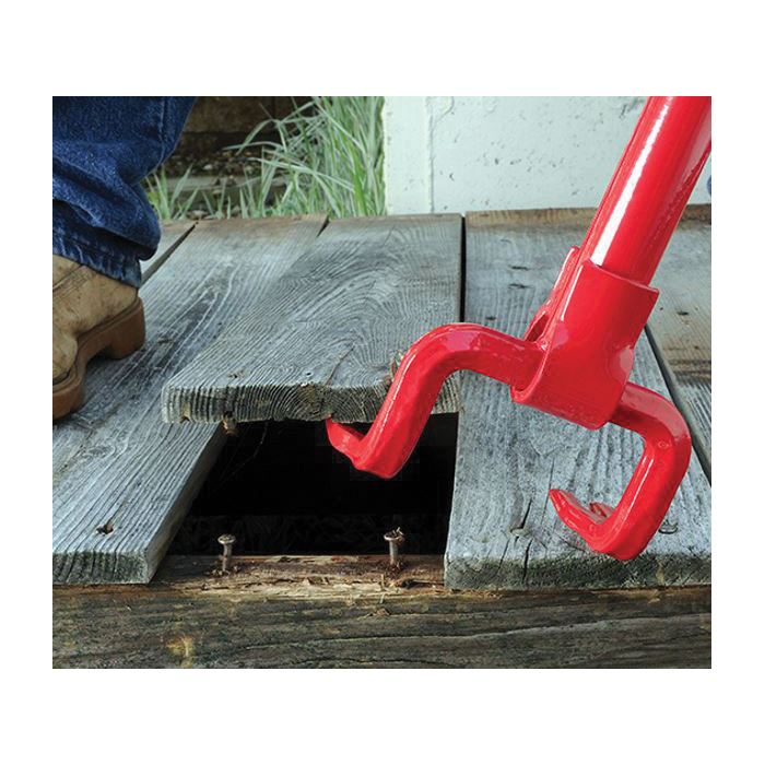 • Easily pry up boards from a comfortable standing position