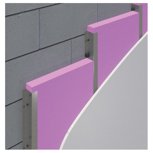 ClarkDietrich Z-furring is used to fur out interior masonry or poured concrete wall substrates and to support rigid polystyrene, mineral or fiberglass batt insulation while providing a uniform plane for gypsum panel attachment. Z-furring is intended to be installed vertically with the 3/4 in flange against the substrate. The type of fastener and spacing will vary based on application. Gypsum wallboard may be installed parallel or perpendicular to the Z-furring. Metal lath should be installed perpendicular to the Z-furring.