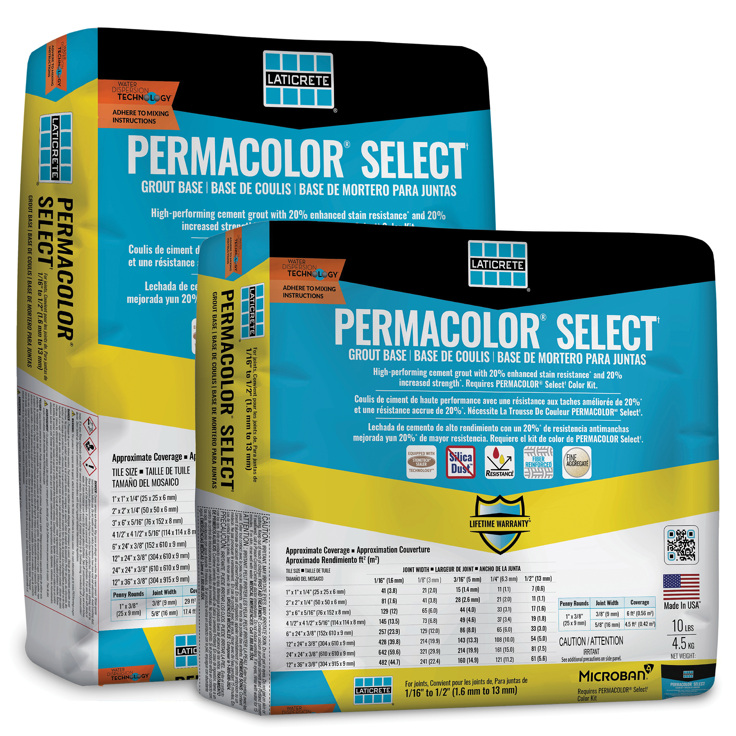 PERMACOLOR® Select is an advanced high-performance two-part cementitious grout system offering Water Dispersion Technology™ (WDT) and the industry's first dispersible dry pigment solution. It is designed for virtually all types of residential and commercial installations and offers optimum performance on the most demanding exterior or interior applications. Easy to mix, grout and clean, this grout is fast setting and is suitable for joints 1/16 to 1/2 in (1.5 to 12 mm) wide on floors or walls.