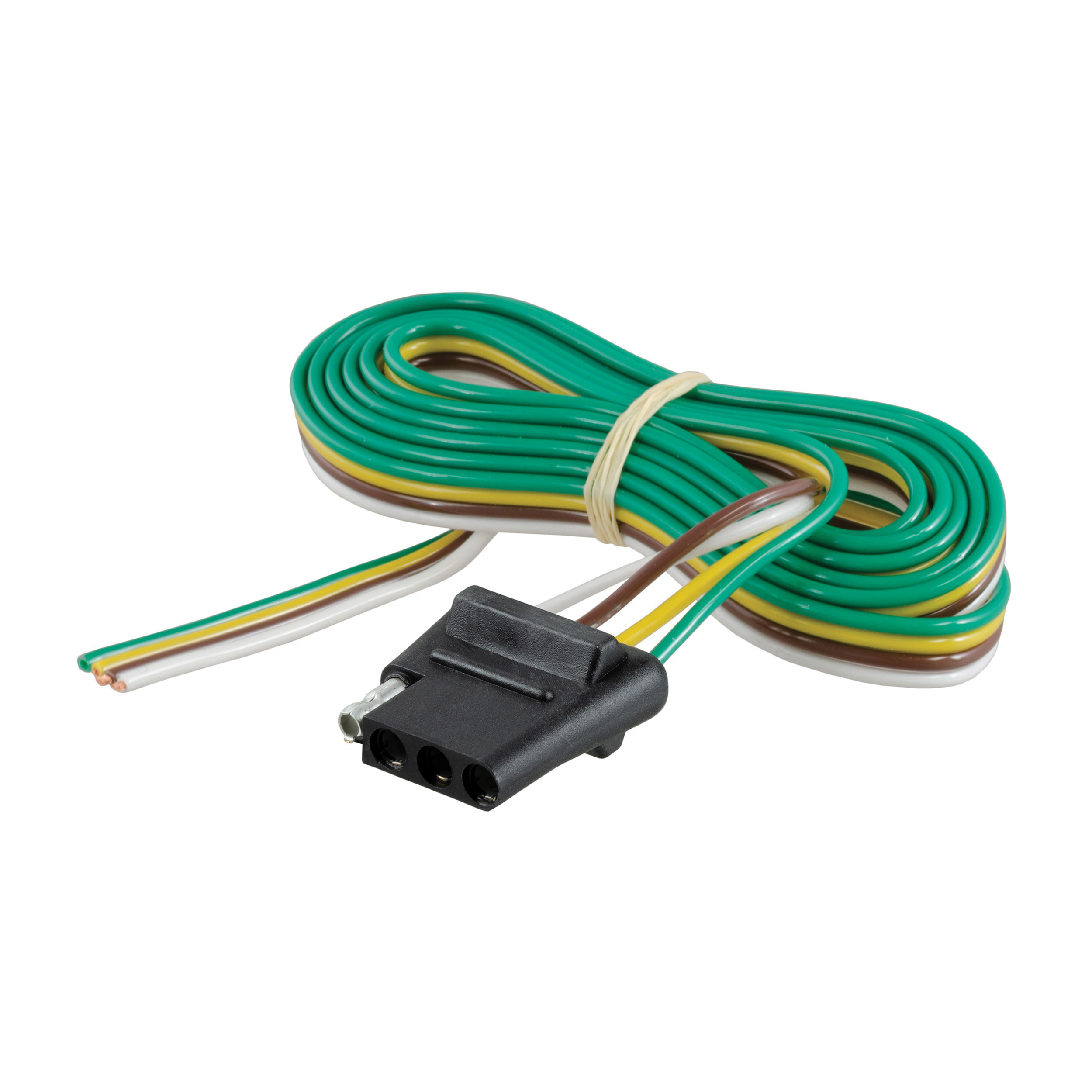Like trailer hitches and ball mounts, electrical connectors range all over the board in shape, size and capability, but no matter what your trailer's electrical functions are, you need a solid connection to keep the power flowing and ensure safety on the road. Curt electrical connectors are designed and manufactured to give you a reliable connection every time you plug in your trailer. This four way flat connector is designed to supply power for tail lights, turn signals and brake lights, as well as a ground connection. It features durable rubber molded construction and is made with 60 in of standard color coded, bonded wire to easily splice into your vehicle's wiring system. This four way flat connector is a female end socket, specifically designed for the car side of the connection. It is compatible with all two wire vehicle systems.