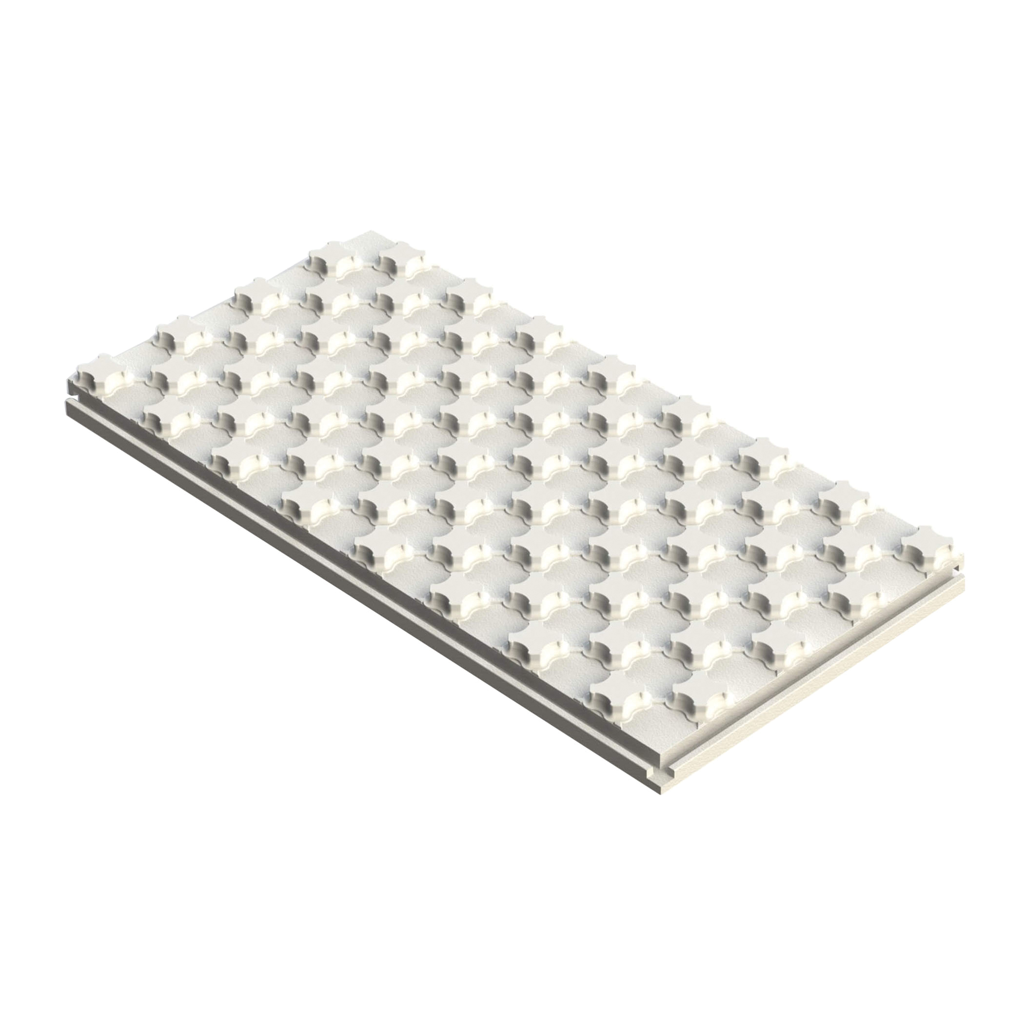 Logix Insulated Concrete Forms Ltd. is pleased to announce the launch of Heat-Sheet a new lightweight radiant floor insulating system designed for slab-on-grade, sandwich slab, snow-melt, retrofit and overlay applications. Compact 2 x 4 ft Heat-Sheet panels are made with Type 2 or Type 3 EPS, come in six thicknesses and offer R-values from R4 to R14. Heat-Sheet's tough preformed nodules resist jobsite breakage and form the convenient 3 in multi-directional tubing channel grid. With Heat-Sheet, 1/2, 5/8 or 3/4 in radiant floor tubing easily walks into place and stays in place without ties, clips or staples in most cases.