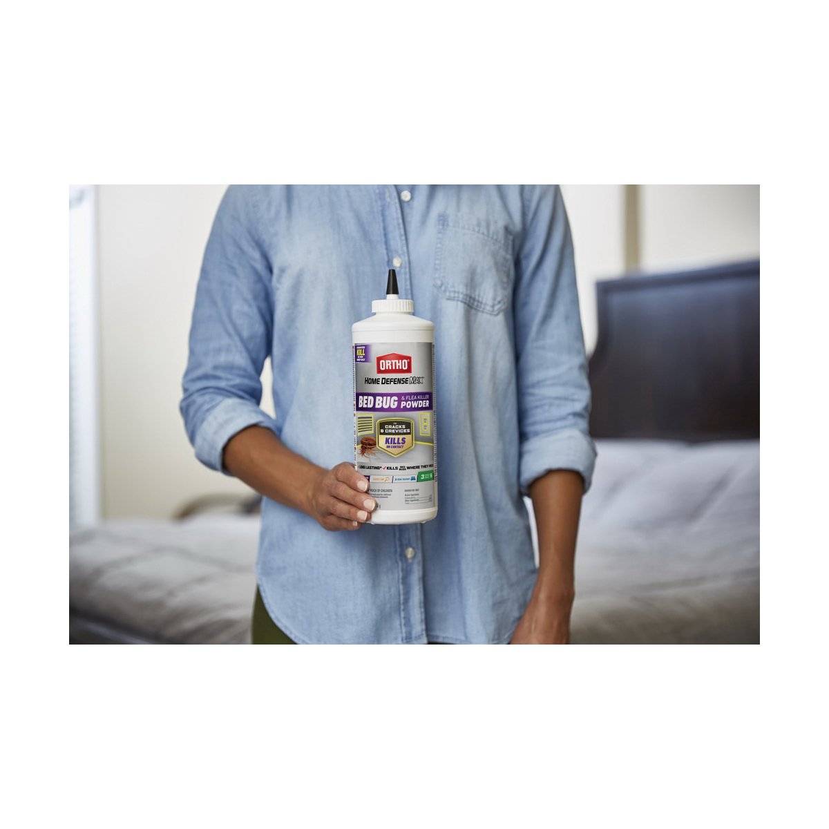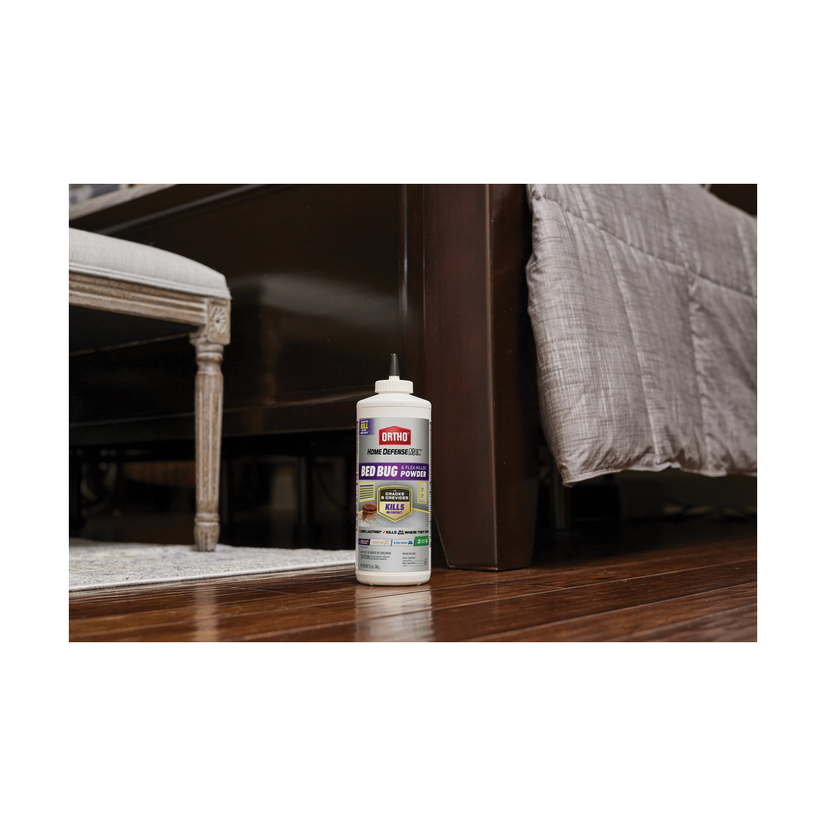 Kill bed bugs where they hide with Ortho home defense max bed bug and flea killer powder. This long-lasting powder is the third step in a three-step bed bug solution system. It kills by contact and provides long-lasting (up to 8 months) control. Use a hand duster or apply directly from the bottle. Apply to cracks and crevices in bed frames, along baseboards, near window frames and in other places bugs travel and like to hide. Also kills ants, silverfish, centipedes, scorpions and spiders. You can use Ortho home defense max bed bug and flea powder indoors with confidence.