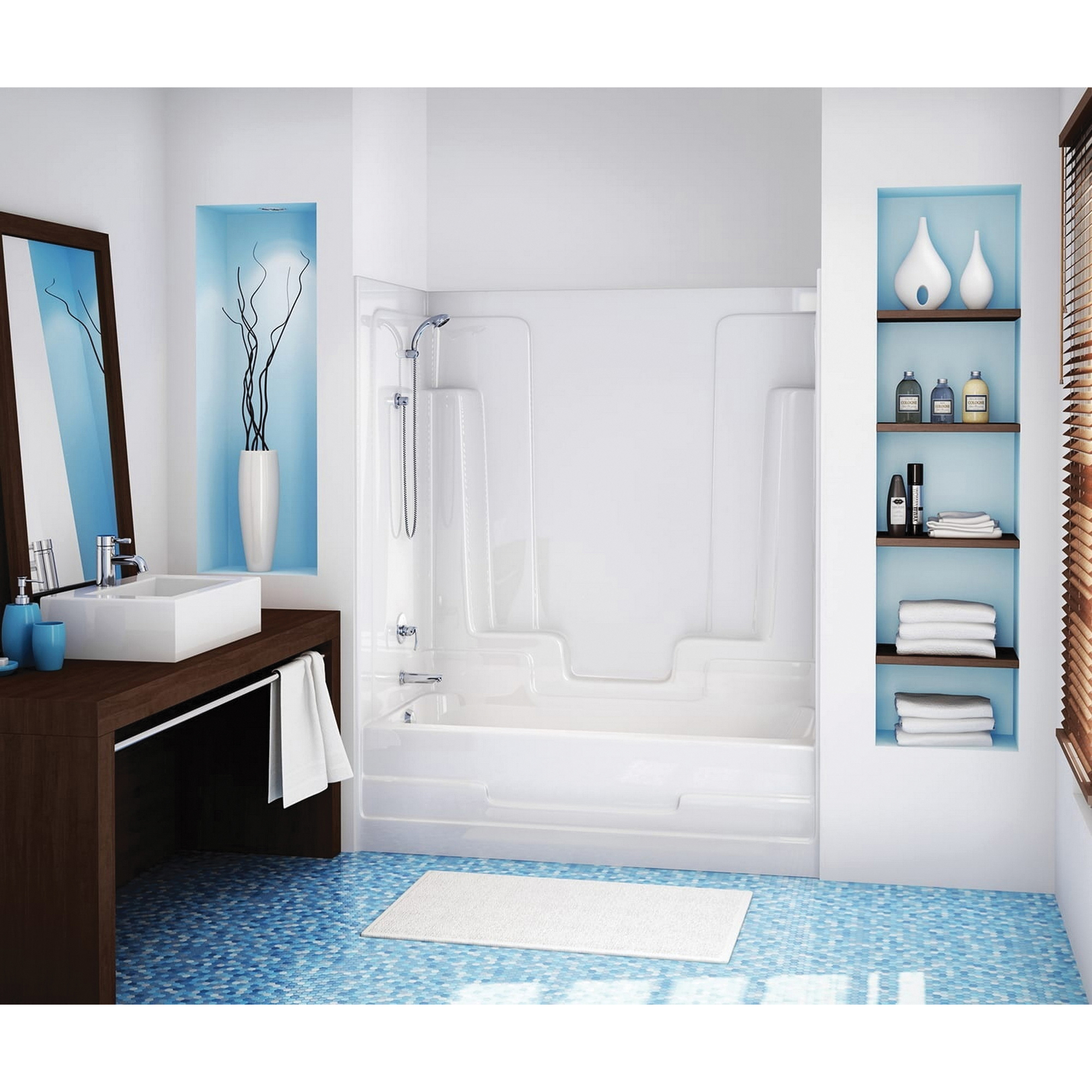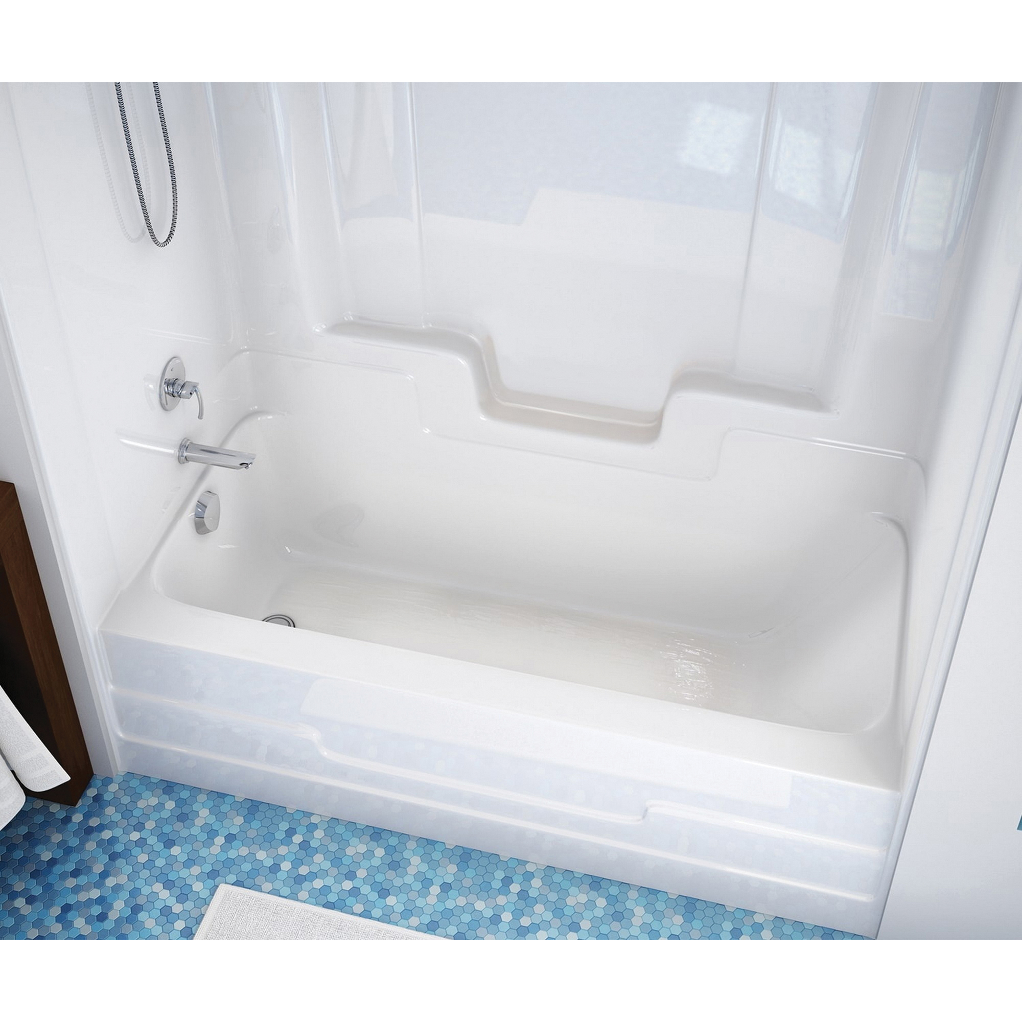 Maax Nordica 1-Piece Tub Shower, Tub Capacity: 31 gal, Drain Location: Left, Door Opening Height: 56-3/4 in, Door Opening Width: 56-3/4 in, Installation Type: Alcove, Acrylic, Bone, Dimensions: 59-3/8 in L x 32-3/4 in W x 73-1/2 in H
