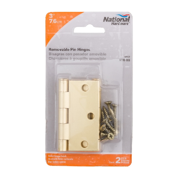 Stanley Hardware S690-260 Door Hinge, 3 in H Frame Leaf, 0.08 in Thick Frame Leaf, Steel, Satin Brass, Removable Pin