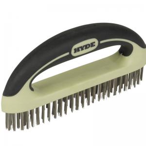 Hyde MAXXGRIP PRO 46838 Wire Brush, 8 in L Brush, 1-1/4 in W Brush, Stainless Steel Bristle, 1-1/8 in L Trim