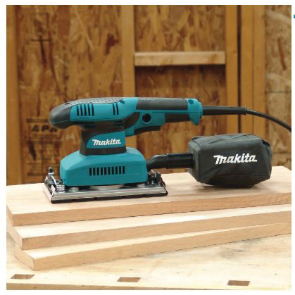 The Makita 1/3 sheet finishing sander combines fast, smooth performance with a contoured rubberized palm grip and ease-of-use features. The BO3710 is ideal for woodworkers and finish carpenters who require a best in class sander. The precision engineered all ball bearing construction is engineered to reduce vibration and noise. The efficient through the pad dust collection system helps provide a cleaner work environment, while the fabric dust bag has an extra wide mouth for faster disposal.