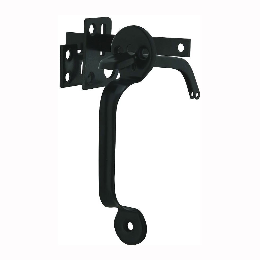 For use on 5/8 to 1-3/4 in thick gates and doors requiring a latched engagement. 6-9/16 in handle length; 4 in grip. Latch bar with flanged bushing to prevent bar from binding. Strike and guide eyes accept up to 17/32 in shackles for added security. Fasteners concealed with doors closed. Screws included.
