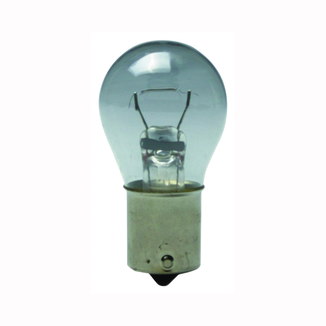 Clear or painted amber glass S-8 bulb with C-6/C-6 filament for auto back-up light or turn signal, auto/truck back-up, turn signal or high-mount stop.